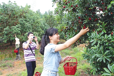 小湖鎮楊梅栽培歷史悠久,當地楊梅品種資源豐富,本地的優質品種“大烏”、“二色”,名列福建名優水果目錄,以其肉厚汁多、核小、色澤鮮艷、酸甜可口、風味獨特等特點而聞名。目前,全鎮種植楊梅6000多畝,其中有4000多畝開采,產量達200多萬公斤。今年3月,“小湖楊梅”正式被國家工商總局商標局核準為地理標志證明商標。因此,揚眉農莊主人徐治福才這般有底氣。 小湖鎮農技站站長全祖和告訴筆者,2009年6月,在鎮黨委、政府及有關部門的支持下,小湖鎮的楊梅種植戶組建了小湖大烏楊梅專業合作社,合作社成員有26人。四年來,社員們或請專家前來開辦技術講座,或舉辦“擂臺賽”,呈現強大的凝聚力。如今,合作社還吸引了建甌市楊梅種植戶的參與,社員達到52戶。 (張貴興) 相關新聞 又到楊梅豐收時 10日,在邵武市水北鎮龍斗村果農陳根銀的果園里,游客正在采摘楊梅。 水北鎮目前共種植楊梅2400多畝,主要以東魁、黑炭兩個品種居多。果農從楊梅中看到商機,成立了閩溪果蔬種植農民專業合作社,注冊了“鹿泉山”楊梅品牌。陳根銀在無公害水果基地種植了4畝楊梅,每到豐收時節都會吸引許多游客前來采摘,當季即可收入4萬余元。 (余曉勤 李俊 攝) |