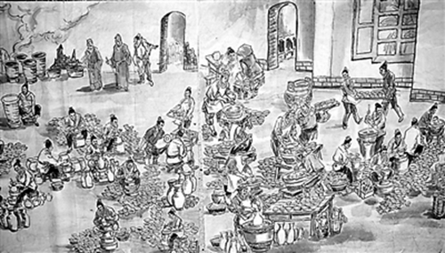 《大宋建盞圖》節選 建陽79歲的老畫家李錚,歷時3個月,繪就了表現宋代建陽建盞制作過程的歷史長卷《大宋建盞圖》。 25日,李老向筆者展示了這幅剛剛完稿的畫卷。畫卷長8.28米 、高0.7米,圖中共繪就大小人物260多個,人物形象神態各異,栩栩如生。整個畫面繁而不雜,多而不亂,疏密有致,繁簡得當,動靜、聚散處理得恰到好處。 在這幅長卷中,李老根據歷史資料以及現在窯工生產建盞,一筆一畫,描繪宋代時期建陽建盞生產的全盛面貌,不僅再現了宋代建盞燒制過程,而且藝術再現了建陽建盞從生產走向貿易,走向市場,走向世界以及當時社會各界人士、皇家宮廷盛行用建盞斗茶的情景。 《大宋建盞圖》從右往左大致分為八個部分:第一部分是挖土、挑土、踩土,水釋過濾以及沉淀過程;第二部分是制坯場景;第三部分是上釉;第四部分是裝窯;第五部分是窯煙裊裊燒制建盞;第六部分描繪天下客商,販者如織,滿載建盞,行色匆匆;第七部分是火爆的建盞交易場景,商戶林立、攤位櫛比,古時景致點綴其間,牛車、馬車、獨輪車往來不絕;第八部分是皇家園林里,達官貴人沉醉其中的斗茶情景,規模宏大,場面熱烈。 說起宋朝建陽建盞全盛時期的盛況,李老特別介紹了畫卷左邊的情景。他說,在當時,建陽水吉這一帶,常有來自全國各地的人前來采購建盞,甚至還有日本人、朝鮮人和大鼻子歐洲人前來。這些,也都體現在了畫卷上。當時的和尚和文人雅士,都喜歡用建盞來泡茶,徽宗皇帝曾經講過,“盞杯有益,氣韻綿長,自古文人愛斗茶?!币虼?,畫卷以斗茶結束。 李錚老人說,為了完成這幅作品,他畫了兩次稿,走訪了建盞燒制個人和有關部門,查找翻閱了許多有關建盞的資料。為了讓場景更加逼真,他不顧年老體邁,多次到后井去看龍窯。 據悉,《大宋建盞圖》是李錚老人繪制的第五幅反映建陽人文歷史的長卷。另外四個長卷分別是《建陽歷代名人圖卷》《大宋書坊圖》《建本遺香圖》《解放軍入閩第一戰》。 (葉成林 文/攝) |