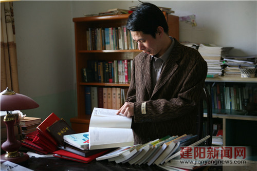 “把我每一天寂寞,把我每一天孤單,一點一滴存入感情銀行。拿著厚厚的一疊存折,去兌換我的新娘……她永遠是那么年輕漂亮,她永遠是那么純潔善良。” 這是建陽作家葉木青歌詞集《相思總比寂寞好》中的《感情銀行》的優美詞句。 7月2日,葉木青對筆者說:“今年,我的童話書《黑母雞的處世哲學》與北京宇泰文化傳播有限公司簽訂有聲讀物出版;6月5日,《小雞吉格故事》由北京可以這樣文化傳媒有限公司簽訂完有聲發行出版,并錄音剪輯完成上市,到目前已有2000多名聽眾。” 今年44歲的葉木青,是中國詩歌學會會員、中國音樂文學學會會員、福建省音樂家協會會員、福建省作家協會會員等。20多年來筆耕不輟,在全國各地報刊上發表歌詞等文學作品800多篇(首),共計50多萬字;出版了詩集《相思總比寂寞好》、《深山高歌》、童話集《黑母雞的處世哲學》等,受到名家的關注。他的作品曾獲《人民文學》雜志“愛與和平”征文優秀獎、福建省“五個一工程”獎、“閩北改革開放30年優秀圖書獎”等。曾獲得南平市“中青德藝雙馨文藝家”、建陽區“區管優秀人才”等表彰。 苦難中結緣文學 1971年12月,葉木青出生在建陽區漳墩鎮鳳凰村的一戶農家。周歲那年,他不幸患上小兒麻痹癥。身體的疼痛,精神的折磨,伴隨著他艱難地成長,5歲時才能勉強直立扶墻學步;10歲才入學。初中時就有文章在刊物發表,在校園里他有個“小作家”的綽號。 初中畢業后,葉木青由于家庭貧寒輟學。他沒有因此而消沉,而是更加堅定地走上文學創作之路,詩文陸續不斷在《福建日報》、《閩北日報》等報刊發表;他的小說《妻》刊登在浙江省《野草》雜志,收入中殘聯主編的《收獲感動》一書,他的小小說《花錢的秘訣》1994年在《野草》刊物上發表后獲得“春蘭世界華文”微型小說大賽優秀獎。 1991年,葉木青謀到一份臨時工作,工資雖不高,但生活總算稍微穩定,為充實自己,葉木青便把省吃儉用的錢全用來買書,鄉里供銷社書店的文史類書都讓他搬進了書房。為了得到《現代漢語八百詞》、《動詞用法詞典》工具書,他還跟隨貨車司機到杭州新華書店購買。 寂寞中筆耕不輟 上個世紀九十年代中期,卡拉OK在城鄉流行,他也想讓自己的作品唱進平常百姓的心里,葉木青開始了歌詞創作。他精心創作的一首首歌詞先后在《詞刊》、《歌曲》、《音樂周報》、《音樂天地》等40多家詩詞刊物發表,60多首被全國各地作曲家譜曲后登載、轉載、演唱、錄音傳播。2005年,創作小說《獨臂余狹》榮獲中國殘疾人作家聯誼會、《人民文學》雜志“愛與和平”征文優秀獎; 2006年10多萬字的童話集《黑母雞的處世哲學》入選中國殘疾人作家“金蘋果”叢書,由南方日報出版社出版后,列入廣東省關工委捐贈貧困地區學生圖書之一,并榮獲“閩北改革開放30年優秀圖書”獎。2010年,采編的《深山高歌》福建畬族山歌集出版; 2011年他的童遙《香噴噴的米飯從哪里來》被中宣部、中央文明辦確定為百首童謠參加網上推薦…… 清苦中歌唱生活 葉木青常說自己是苦命的作者,沒有穩定的工作和財力支持,寫作對他來說不是閑情逸致,而是為了謀工作、求生存。 這些年,他又寫起兒童文學,在童話創作上嶄露頭角。提起當今兒童文學,葉木青坦言:“如今市場上發行的童書多是國外譯作,甚至模仿或抄襲國外作品,題材不是公主就魔法,這類作品讀多了,會造成青少年得軟骨癥、精神虛脫。我的童話要讓小朋友回歸現實生活,直面生活的困難和挫折……認識世間真善美”。 也許正是由于作者生在農村,長在底層,他筆下的童話趣味盎然、神奇美妙,展現出一幅幅鄉情野趣、田園風光的美麗畫卷,散發著濃郁的鄉土氣息,他的童話故事有著獨特的魅力和強烈吸引力。他先后在《花火》、《中外童話》等20多家兒童雜志刊物發表,其中長篇童話《小雞吉格故事》從2013年4月起,在由中國關工委教發中心、河南省教育廳關工委主辦的《下一代英才》月刊雜志連載,塑造了小雞吉格勇敢機智、不畏艱難的形像,成為該刊的品牌,至今已發表了50多篇。 葉木青告訴記者,今年4月,《中國兒歌大系·華東卷(三)》由遼寧少年兒童出版社出版發行。去年他受著名兒童文學作家〈中國兒歌大系·華東卷〉主編圣野之邀,負責福建區組稿。經過葉木青辛勤努力四處征稿,我省有19位作者38首兒歌入選大系,作品精彩紛呈,圣野等老師親筆題辭以資贊許。(張貴興) |