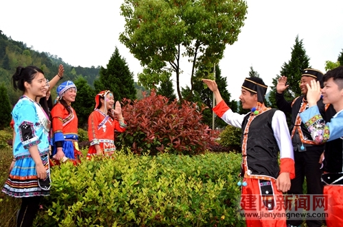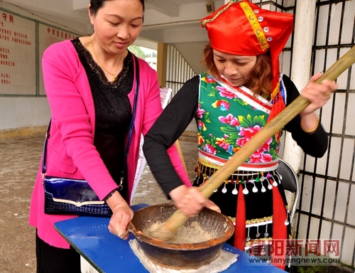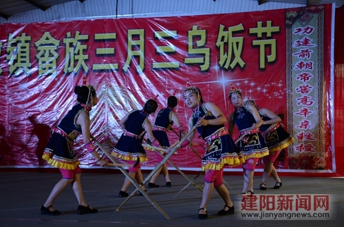 畬族山歌對唱(劉朝旭 李祥嬌) 4月9日,筆者走進漳墩鎮的民族中學,這里人聲鼎沸,熱鬧非凡,原來一年一度的畬族“三月三”烏飯節在這里舉行,周邊村莊的畬民和眾多游客都前來參加這個盛大的民俗文化節。 “三月三”烏飯節是畬族特有的傳統節日,是畬族群眾的一次家族大聚會,這一天畬民家家都做烏米飯,全家共餐,饋贈親友,同時還聚集一起唱歌、跳舞,以此來紀念這一節日。 在活動現場,畬民們穿著鮮艷亮麗的民族服飾為游客們制作擂茶:在擂缽內加入大米、花生、芝麻等原料,用擂棍頻頻舂搗,用撈瓢過濾擂好的茶,加水沖煮,味道濃郁綿長的擂茶就制作出來了。游客們一邊品嘗獨具特色的擂茶,一邊向畬民學習擂茶制作工藝,還有游客紛紛拍照留念。 “今天我和朋友們一起來這里玩,這里太棒了,可以親自體驗畬族文化,感覺十分有趣”,40多歲的童女士興奮地說道。 龍角巫舞、火把舞山歌對唱、四季梅花舞、扁擔舞等一系列的傳統的畬族歌舞表演在民族中學的禮堂內上演著,充滿著濃濃畬族風情讓觀眾不禁沉醉其中,大家不時驚嘆,鼓掌,為演出者熱情四溢的表演歡呼。 畬民在現場制作擂茶(鄧雪 攝) 今年漳墩“三月三”烏飯節不僅吸引了一大批游客前來,建陽當地的攝影愛好者、作家也慕名前來采風,感受豐富多彩的民俗文化。他們不時拿出相機記錄著畬族的特色食品、服飾、歌舞,保存這美好的時光。 在歌舞表演結束后,大家一起到學校的操場觀看畬族的射箭表演,民族中學的孩子們手持傳統弓箭,氣定神閑瞄準靶心,在場上形成了一道讓人賞心悅目的風景。 看完表演后,游客們的目光紛紛被一位可愛的畬族姑娘吸引了,只見她穿著紅色的畬族服,手里端著新鮮出鍋的烏米飯,色澤藍綠烏黑,并帶油光,讓人食欲大開。畬民介紹道,烏米飯是將從山地里采來野生烏稔樹的嫩葉,置于石臼中搗爛后用布包好放入鍋中浸熬,然后撈出布包,將白花花的糯米倒入烏黑的湯汁里燒煮成了飯。烏米飯是具有民族特色的保健美食,在這里家家戶戶都會蒸煮。 品擂茶,看表演,吃烏飯,這些豐富多彩的民俗活動,展示獨特民族文化,今年漳墩的“三月三”,畬民的熱情好客、能歌善舞讓游客留下了深刻的印象,感受了畬鄉風情。 畬族舞蹈《扁擔情》 “我帶著孩子們參觀了畬族展覽館,了解畬族的日常生活用品、服飾、體育競技、畬族醫藥等,孩子們的興致很高,看得很認真,學習了很多畬族知識。”第一次來漳墩的陳女士對筆者說道。 據悉,漳墩鎮建陽區少數民族(畬族)的主要居住地,全鎮現有畬族人口1600多人,約占全區少數民族人口的30.1%。漳墩鎮歷來重視挖掘、保護畬族文化歷史,一年一度舉辦“三月三”烏飯節,不僅傳承了畬族文化,還向外界展示畬族民情民俗。同時漳墩鎮還通過建設畬族風情陳列館和畬族綜合展示室,在陳元村民族小學辦起了畬族語言班、舞蹈班,通過多種方式來保護畬族文化。(鄧雪 姜法彪 丁曉雄) |