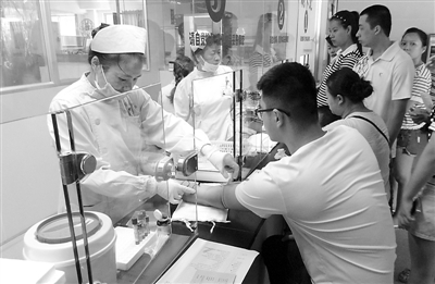 昨日,閩北首個征兵信息管理系統體檢站在建陽區建成,并開展首批大學生應征青年試檢和系統運行工作。今后,該區征兵體檢將全程使用體檢信息管理系統,參檢醫生只需將應征青年體檢結果登記錄入管理信息系統,系統就會自動展開檢測評估、匯總結果、統計報表、篩選上傳,大大提高了征兵體檢效率,有效確保兵員質量。圖為應征大學生正在體檢站采集血樣,血樣數據將被錄入征兵信息管理系統。