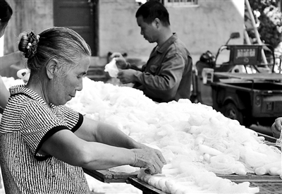 ? 村民在整理采收下來的竹蓀 “今年竹蓀產量不錯,一畝大約能產竹蓀100公斤,全都被古田的銷售商預訂了。”日前一大早,順昌縣大干鎮慈悲村的竹蓀種植戶林德穩就和雇來的工人在自家的種植基地忙著搶摘竹蓀。 “采收時要輕輕取掉帽托,然后取掉菌托,留下菌柄和菌群,這樣才能保證它的完整性。”林德穩一邊忙一邊說,“目前已經進入竹蓀采摘的黃金期,每天都有竹蓀長出,上午出菌最多。今年我種了4畝多,每畝的純收入9000元左右,可以給我帶來大概4萬元的收入。” “竹蓀具有很好的降血脂功能,經常食用對身體好,所以這幾年來備受人們青睞。”村書記陳漢文介紹,慈悲村2009年引進竹蓀種植,目前全村有近四成的村民種植竹蓀,種植面積約200畝。近幾年,村民通過土壤改良、植保管理、烘干技術以及采摘時間掌握等方式,保證了竹蓀多產、穩產、優質,并以此贏得了市場。 “今年竹蓀的收購價格是每公斤140元左右,一畝的純收入少的有7000多元,多的有一萬多元,很多村民都通過這個渠道脫貧致富。”陳漢文還表示,目前,村民在竹蓀培育種植基礎上,逐步發展培育姬松茸等其他菇類種植,期望能獲得更好的收益。 (盧國華 羅倩 文/攝) |