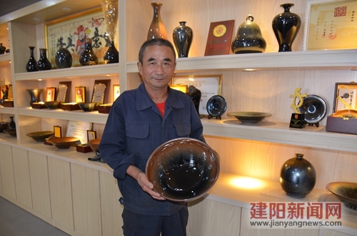 秋陽下,清澈的南浦溪靜靜流淌,千年古鎮水吉依水而立。國道旁的許家有建盞陶瓷有限公司高大的廠房里,工人專心致志地給晾干的建盞素坯上釉,廠房的一頭,一排用電力推動的古老水碓上下不停地擊打著石臼里的瓷土。一位濃黑眉毛的儒雅老者,趁碓頭抬起的瞬間,靈巧地用鐵鍬翻動著石臼內的瓷土。他就是公司董事長許家有。 堅守:銜接歷史的斷層 古鎮水吉鐘靈毓秀,是建盞的發源地。宋時曾經"百窯相連,窯工數千,窯火晝夜不熄"。所產建盞,以獨特的黑瓷魅力,與青瓷、白瓷三分天下,備受貴族、士大夫的青睞。現年61歲的許家有就出生成長在這片神奇的土地上。 許家是陶瓷燒制世家。許家有的曾祖父許衍曾于南山建造龍窯燒制陶瓷,至其祖父許立文時,許家已經擁有數條相當規模的龍窯。1956年,社會主義工商業改造,許家的陶瓷作坊改稱為"建陽瓷器廠"。1970年,剛滿12歲的許家有進入瓷廠跟隨父親學習燒制白瓷。洗泥、煉泥、拉坯、釉水配置、燒窯……小小年紀的許家有一點就通,不到兩年,許家有已能獨擋一面。瓷器是土與火的藝術,樸素的泥土經過窯火的燒烤完成鳳凰涅槃般的華麗轉身,光潔如玉、晶瑩剔透,令年輕的許家有深深著迷,18歲的他確定了自己的職業--燒窯。1979年,國家重新挖掘建盞燒制技藝,中國工藝美術學院和福建省輕工研究所研究人員在建陽瓷器廠鉆研建盞燒制工藝,當時的燒窯任務,便全是由許家有帶班完成。經過兩年多的不懈努力,失傳800年的建盞制作技藝得以恢復,不久專家組撤走。 八十年代末建陽瓷廠改制解散,許家有為了養家糊口買了大貨車跑貨運,很快走上致富的道路。但是,熊熊的窯火常在夢中燃燒,流淌在血脈中的傳承和堅守,攪得他寢食難安,他心中始終懷有一個夢想,那就是還原兔毫盞最初的模樣。當年的專家組成員北京陶瓷專家鄒應林常打電話給他,諄諄告誡"不能讓建盞制作工藝再次斷代"。在開車的幾年中,他從未停止過對兔毫盞燒制方法的鉆研,在專家鄒應林、郭富亭的指導下,他不停地嘗試調整燒制方法。然而,做出樣品后,他找同行的朋友幫忙燒制,卻經常被拒之門外。2000年,許家有結束貨運生意,和朋友合伙在水吉池中蘆花坪新辟一條龍窯,研究建盞的燒制。經過8年多的反復試驗,終于成功燒制出兔毫斑建盞。 2013年,許家有在水吉后井創辦建陽市水吉鎮許家有建盞陶瓷有限公司,他研發的兔毫盞產品不僅達到形似、質似,而且其工藝水平在繼承宋窯的基礎上有了巨大的飛躍。2013年11月,許家有獲評南平市陶瓷工藝工藝美術師;同年12月獲建陽市非物質文化遺產項目"建窯建盞燒制技藝"代表性傳承人榮譽;2014年許家有的《大撇口兔毫盞》榮獲上海國際禮品工藝品創意設計展覽工藝美術金獎。《福建日報》、《時尚旅游》、《赤子》等多家媒體爭相對許家有進行采訪和報道,東南衛視《海峽名錄》、中央電視臺《瓷路》等節目也曾邀請許家有參與錄制。為了培養更多的專業人才,使之更好地繼承和發揚建盞制作技藝的衣缽,2014年底,政府部門特批以許家有建盞陶瓷有限公司為依托成立"許家有陶瓷工藝美術大師示范工作室"。至此,這一門與時代斷層已久的技藝,終于又走上了一條康莊大道。 傳承:桃李不言下自成蹊 "龍窯今年10月份開工建設,年底將建成。"提起建設中的龍窯,許家有掩飾不住內心的喜悅。現代的陶瓷燒制多半已采用電窯或氣窯,費用低,容易控溫,成品率高。建一座像樣的龍窯沒有百八十萬是做不到的。可是,在許家有看來,還原是對歷史的尊重,只有分毫不差的復刻才能體現歷史的厚重和時代背景賦予器物的附加值,才是真正意義上的傳承。"現在會建龍窯、燒龍窯的人已屈指可數。"許家有執意建龍窯的重要原因之一--"教會幾個會燒龍窯的年輕人。" 使用傳統龍窯燒制陶瓷,沒有幾十年經驗是無法勝任的。許家有祖上數輩以陶瓷為業,燒窯對于他來說,除了是家傳的技藝之外,也許已經成為了一種天賦。瓷業俗話"七死八活九翻身"說的就是天氣對柴窯燒制陶瓷的影響。七月天氣悶熱,氣壓低,窯內進風量減少,木柴燃燒不充分,窯內溫度便達不到陶瓷燒制的要求,因此成品率大大降低;八月氣候條件改善;九月秋高氣爽,不冷不熱,正是陶瓷燒制的好時節。龍窯操作程序復雜,泥坯入窯、不同的擺放位置有不同的注意事項;什么時候投柴,投多少,燒窯人心中要有一本賬;粉紅、淡黃、淡白、銀白、赤眼,不同的火光代表不同的溫度。"這些都要手把手地教給年輕人,傳承下去。"許家有這樣告訴我們。 "教會徒弟餓死師傅。"傳統的手藝人,教徒弟時總要留幾招看家本領,更忌諱多收徒弟。許家有卻認為一個行業要健康發展,必須形成一定規模的群體,建立健康的行業標桿,建盞文化才能更好地得到傳承。所以,找上門來真正想學做建盞的拜師者,許家有幾乎從不拒絕,免費教授。短短幾年時間,許家有教過的徒弟已有30多人。不少弟子一出師就成立自己的工作室,生意做得風生水起。剛參加浙江非遺博覽會歸來的"守藝建盞"工作室總監80后林杰,就是許家有的得意弟子之一。林杰的建盞作品器型精巧、口沿潤、玻化程度高,一投放市場便廣受好評,最近正為完成高端銷售平臺"東家"的訂單爭分奪秒。林杰告訴我們,生活中師父是個隨和的人,對每個弟子關心備注、傾囊相授,可一旦開始工作,他對每個細節的要求都格外嚴