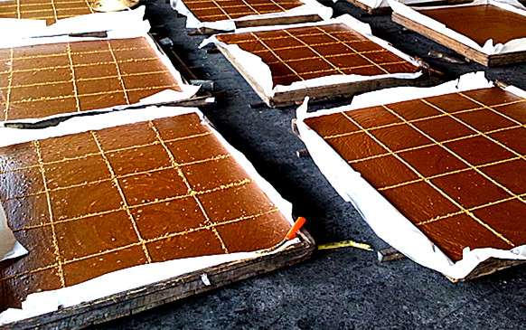 (熬煮糖汁) 本報訊 小湖鎮祝中村的土法榨糖有著上百年的歷史,在過去,這里的土法榨糖就已聞名遐爾。祝中村生產紅糖全部采用傳統工藝,于今年9月入選南平市第七批非物質文化遺產名錄。近日,筆者在祝中村看到村民們沉浸在收割甘蔗和制作糖片的喜悅場面,并目睹了這原汁原味的制作紅糖的全過程。 每年冬季進入十二月后,村子里的作坊就開始燒制紅糖,村民將地里的甘蔗收回來后,運到榨糖場,經過榨汁、熬、煎等多道工序,最后制成紅糖。甘蔗從田里砍回來,放到機器里面榨成汁,然后將蔗汁放到鍋里去熬,大概有100多斤的甘蔗汁,可以熬制出十斤的紅糖,沒有放任何添加劑,是全天然的。 過去榨汁用牛拉石輥或木輥壓榨甘蔗,現在采用電動機,工匠師傅將蔗汁舀到鐵鍋里,在各序列的鐵鍋里除泡、蒸發,熬到一定時候糖汁就變成了金黃色的糖漿。糖漿熬煮火候到時,翻著氣泡的糖漿被舀進一個木質的推車里,再用特制的鏟子翻攪糖漿,待糖漿稍冷卻后,倒入方形的模具里,扒平糖漿,等到完全冷卻結塊,就用小刀劃成一小塊一小塊的長方形,甜津津的紅糖塊就制成了。 在現代機械化工業快速發展的當今,古老的土法制糖坊在城市里很少能覓到蹤跡了。城市里市面上也很少能見到土法制的紅糖,取而代之的是亮晶晶的白砂糖。但在人們的生活中,土法制紅糖也有著白砂糖替代不了用處,據說土法制紅糖煮姜茶就有很好的補血功效、是產后孕婦恢復身體良好的食品。還有人們在做湯圓、糖糕、米花時,土法制紅糖是很好的材料。 目前,土法制紅糖的市場價格連年增長,現在每公斤26元左右,祝中村村民依靠種植200多畝甘蔗榨糖,榨完的甘蔗渣還用來生產竹蓀,僅此一項,村民每年可從中增加收入260多萬元。(王晶 文/攝) (板糖成型) |