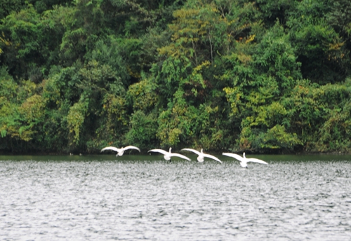 人間仙境,天鵝暢游 乘船而下,入目的是重重疊疊的山,在云霧中更顯縹緲,山頭若隱若現地浮在霧海里,倒影重重,山、水、天縱橫交錯,讓人仿佛置身于人間仙境中。 緊鄰國家級生態保護區、世界文化與自然雙重遺產武夷山的仙牛灣,生態環境優越,擁有稀有的原始森林資源,連綿不絕的6000多畝生態林,形成了山奇水秀的自然生態奇觀,引人入勝。 一路漂流間,驚喜地看到幾群的野鴨在河水中游蕩著,左右上下游移,自由自在,無拘無束,一幅愜意安然的景象,更讓人開心的是那一聲聲悅耳動聽的鳥叫聲在耳畔響起,水鳥在空中恣意飛舞,高興時飛到水上輕點,蕩起水波陣陣,這樣美麗的畫卷就在眼前緩緩展開,盡收眼底,使人心情歡愉暢快。 驚喜來得太突然,山水變換間,竟然看到四只美麗的天鵝在水中歡快地暢游著,不禁加快行船速度,想要離那可愛的家伙更近一些,仿佛天地間眼里只看得見它們。 天鵝們向岸邊的方向游動著,時而停下嬉戲,時而拍打翅膀,在這碧水藍天的映襯下格外突出醒目,成為了寒冬時節仙牛灣里一道亮麗的風景線。 潔白的羽毛突然展開,姿態優雅的天鵝們竟然展翅騰飛,形成一道優美弧線,驚起水花紛飛,留下一道道美麗的倩影。 |