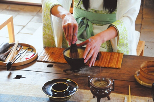 福建日報記者 趙錦飛 通訊員 鄧雪 文/圖 18日,記者來到建陽區考亭村一家古色古香的點茶館,探訪失傳千年的宋代點茶技藝。 伴隨著婉轉低沉的琴音,身著宋代服飾的點茶老師蘇文焚香插花后,緩緩朝客人們點頭示意,開始了點茶表演:炙烤團茶、圓月初碎、運轉曲塵……典雅莊重的十余道工序后,茶湯終制成,客人們細細品嘗著盛至各個建盞中的茶湯,仿佛回到了宋朝,體驗古老的茶文化。 當地時間26日,作為2018南非“海絲茶道”文藝演出的開場節目,表現點茶技藝的《茗戰》將在開普敦表演,點茶文化將走出國門,走向世界舞臺。 湮沒千年,復現于今 點茶在宋代繁榮至極,然而在宋代之后就逐漸衰退,因元朝統治者不太推崇技巧、重意境的點茶法。到明初,明太祖朱元璋廢團茶而興散茶,點茶的重要材料沒有了,茶葉的飲用方法也改為沖泡法,盛行一時的宋代點茶技藝逐漸消失在歷史的舞臺。 千年之后,一些有識之士開始復興點茶,重拾宋代茶藝風流。 “我也是在機緣巧合下開始學習點茶。”穿著漢服的蘇文笑著談起她成為點茶師的故事。2013年時,她第一次在建陽區看到了點茶表演,就被深深地吸引,萌生了學習的意愿,“點茶是本地文化,又與建盞文化息息相關,當時就想自己學習后進行推廣”。于是,她和朋友一起拜訪建陽當時唯一點茶老師陳莉娜,向她請教學習點茶。 據陳莉娜介紹,2006年時她就開始對點茶文化感興趣,但是當時建陽區點茶文化才剛剛起步,有關資料比較少,也沒人會點茶。為了還原點茶技藝,她通過研究《大觀茶論》《茶錄》等大量史料和詩畫,按照記載如實地把每個器具和每道工序進行復原,同時為了使點茶技藝更加完善,她還奔赴開封等地,向茶藝師和僧人學習交流點茶手法,于2012年初步形成了現在的建陽宋代點茶技藝。 經過一段時間的拜師學藝,蘇文的點茶之路由此開始。她在建陽區建盞協會開辦的培訓班上授課,傳授點茶技藝,真正成為點茶文化的推廣人。為了讓點茶文化更好地傳播,2017年蘇文在考亭村開了一間自己的點茶館,系統地開展點茶培訓班,讓點茶技藝得以傳承發展。 “在朋友圈看到點茶視頻,就來建陽學習了,不僅可以豐富我的茶藝,還能通過點茶銷售建盞,一起推廣點茶和建盞,一舉兩得。”來自吉林長白山的茶藝師孫今朝說。 點茶文化精致高雅、工序復雜,為了使點茶飛入“尋常百姓家”,蘇文正在研究隨時在家都能進行的“簡約版點茶”。經過多次嘗試,她發現平時經常沖泡的大紅袍、水仙、肉桂這三種茶葉也可用作點茶,家中備一小石磨,將茶葉研磨成粉,再調膏擊拂即可。 |
