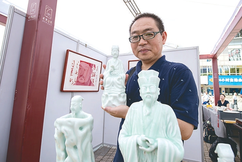 展會現場人潮涌動 朱子布偶為產品代言 青白瓷朱子像 精致的《朱子家訓》讀本 “這幅剪紙作品是以‘朱子講學’為主題進行創作?!?月5日,朱子文化精品紀念展在南平文化廣場舉辦,來自浦城的剪紙手工藝人周冬梅現場介紹自己的剪紙作品。 本次活動由市委宣傳部主辦,市朱子文化保護建設工作領導小組辦公室、市社科聯承辦,設有“朱子文創精品區”、“建窯建盞陶瓷專區”、“非遺文創精品區”和“互動體驗專區”等4大展區三十二個展臺。四十多家企業帶來三百余件文創精品參展,剪紙朱子作品、卡通朱子玩偶、建本雕版印刷《朱子家訓》……各式各樣閩北獨有的文創產品與朱子文化相結合,進一步促進傳統工藝和現代文化相融合,豐富朱子文化品牌的內涵。 “我將傳統工藝和現代青瓷藝術結合,用宋元時期的大口窯瓷器燒制方法制作了朱子像?!笔止に嚾苏虑逭f,在今年6月份舉辦的第十屆海峽論壇南平分會場·紀念朱子誕辰888周年系列活動中,他就展示出一尊青瓷朱子作品?!艾F在,我還以不同形式,燒制出多尊清白瓷朱子文創作品。” “我們茶產品的命名都與朱子文化息息相關,例如這款‘半畝方塘’。”來自福州的朱子緣文化產業有限公司負責人介紹說,他們希望借助朱子文化品牌,推動產品文化發展理念創新,而朱子文化精品紀念展為他們提供了很好的平臺。(朱宇 陳可 文/攝) |