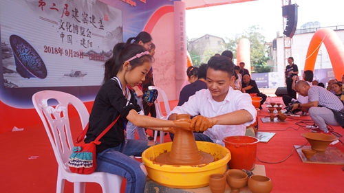 10月1日,在第二屆建窯建盞文化博覽會現場,親子拉坯體驗活動正火熱進行,熱鬧非凡。 活動現場,每臺拉坯機上放著一團準備好的建盞專用泥土,臺上的小朋友和家長們在各位建盞非遺傳承人的講解和幫助下,紛紛打開拉坯機轉起圈來,臺下正排隊等候的小朋友們“伸長了脖子”,躍躍欲試。 “用手輕輕按壓泥土成圓形,手指和手心都要均勻用力,勾勒出杯子的形狀,最后再慢慢修飾……”各位傳承人游走在小朋友的拉坯機前,正耐心的指導他們。小朋友們聽得津津有味,動手制作的時候也毫不示弱,都展現出了非凡的動手能力和想象力,一只只漂亮的泥坯初見端倪,一塊塊泥巴在他們手中變成一件件生動的作品,燒制后便成為永恒的紀念。 “此次親自拉坯體驗活動,不僅提供了和孩子們互動機會,與孩子一起享受一段美好的時光,還激發了孩子們對建盞文化的興趣,學習和了解建陽建盞文化傳承技藝,我覺得非常有意義。”現場體驗拉坯的市民陳芬說。(周心婷) |