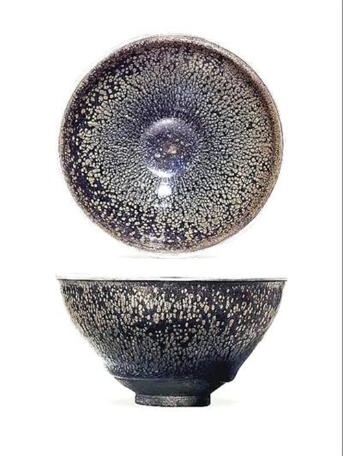 宋代油滴盞 宋徽宗所引領的宋朝美學,究竟有多迷人?近年來,電視熒幕上輪番上演宋朝的影視作品,其中,建盞尤其引人注目。建盞的美,美在形制的簡潔,美在內蘊的深邃。 建窯亦稱“建安窯”“烏泥窯”,窯址在福建省建陽區水吉鎮,宋代名窯之一,以燒黑釉瓷聞名于世。此盞束口,深弧壁,小圈足,底足不留釉。碗內滿施黑釉,外壁施釉近底,釉層較厚并局部有垂掛,釉面滿布銀灰色的油滴斑,色澤自然,在光亮處觀察,似漆黑夜空中的滿天星斗,美不勝收。建盞最早出現在宋代宮廷里的記載時間是政和二年(1112)四月八日。據《宣和遺事》記載,是宋徽宗宴請時“以惠山泉、建溪毫盞,烹新貢太平嘉瑞斗茶賜與蔡京。宋代茶色尚白,以黑釉茶碗為最佳”“取其燠發茶采色也”。北宋蔡襄在其《茶錄》一書中寫道:“茶色白,宜黑盞,建安所造者,紺黑,紋如兔毫,其坯微厚,熁之,久熱難冷,最為要用出他處者,或薄或色紫,皆不及也。 宋徽宗著有《大觀茶論》,盛贊建窯黑釉碗在點茶時”最為要用“。宋代的點茶方式后來被日本人學成,日本人對建窯的黑釉茶碗推崇備至。油滴釉自身不易燒造,其屬于黑釉的特殊品種之一,特點是在漆黑的釉面上散布著許多具有銀灰色金屬光澤的小圓點,大小不一,大的直徑達數毫米,小的只有針尖大小,形似油滴,故名“油滴釉”。 油滴釉的形成與釉層中氣泡大量產生及鐵礦物在氣泡四周富集有關。在1200至1400攝氏度的高溫下,釉層中鐵礦物大量分解成氧化鐵,并有大量氣體伴隨放出,造成大量小氣泡匯集成大氣泡,并在四周形成鐵元素的富集。當這些氣泡上升到釉面時,其四周的富鐵熔體被遺留在氣泡鼓破處,冷卻時析出大量晶體,聚集成團,形成油滴斑。此類油滴黑釉盞因其閃爍萬端的美麗而受到日本國人偏愛,被冠以”油滴天目“之美名。 建盞的盛行與宋朝的斗茶息息相關。所謂斗茶,顧名思義就是比賽茶的優劣,又名斗茗、茗戰,往往是茗戰各方各取所藏好茶,輪流烹煮,品評高下,亦有做成茶餅,再碾成粉末,飲用時連茶粉帶茶水一起喝下者。有多人共斗,也有兩人捉對斗茶的。 茶與盞,盞與茶,在歷史中相互交融,不僅留下了無數精美的藏品,也留下了無數動人的故事。 |