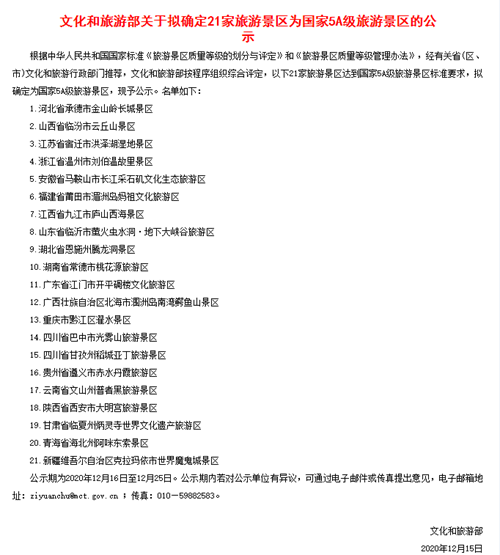 福建新一批國(guó)家5A級(jí)景區(qū)公示
