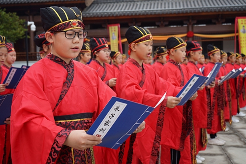 “儒道傳天下,理學貫古今”。19日,由區朱子文化保護建設工作領導小組辦公室主辦,區城投集團承辦,閩北朱子后裔聯誼會協辦,紀念朱子誕辰891周年祭祀大典在考亭書院舉行。中華朱子學會常務副會長朱杰人,省委宣傳部原副部長、省閩學研究會顧問朱清,南平市政協主席林斌,南平市政協原副主席、市朱子文化研究會會長林文志,閩北朱子后裔聯誼會會長朱春水,南平市委宣傳部副部長詹勇,海峽世紀影視公司副總經理、福建電影制片廠副廠長劉朝群,區領導魏敦盛、王沖、吳少華、鄭立新、方丹青等參加活動。 上午9點半,考亭書院集成殿廣場莊嚴肅穆,鼓一通,鐘一響,祭祀大典活動正式開始。在通贊主持下,隨著悠婉的祭樂聲,祭祀人員盛裝手捧供品走向祭祀臺,主祭官王沖恭致《祭文》,初獻官、亞獻官、終獻官敬獻花籃,分獻官向朱子雕像敬獻桂枝。全體祭祀人員行三鞠躬禮,全體祭祀官和學子們齊聲誦讀《朱子家訓》,深切緬懷圣賢朱子,表達對弘揚朱子文化的責任擔當。 與此同時,本次祭祀大典與往年不同的是,遠在新疆木壘縣的師生也同步觀看了直播視頻,這是他們第二次通過視頻直播的方式“近距離”了解朱子文化。木壘縣是南平援疆對口支援地區,為把朱子文化帶進木壘,促進南木兩地文化交流,福建省對口支援新疆工作前方指揮部南平分指推動了此次活動的開展,這也是南平市貫徹落實習近平總書記來閩考察重要講話精神的重要舉措,旨在尊朱子之仁德,敬朱子之理學,感朱子之教化,在全社會營造尊師重教的良好風尚,傳承中華優秀傳統文化。 近年來,我區持續加大朱子文化的保護和建設力度。考亭書院遺址位于考亭村,距建陽市區2.5公里,中國古代著名理學家、思想家、哲學家、教育家、儒學集大成者--朱熹,晚年就定居在建陽,并在此創立考亭書院,著書傳道。此次舉行祭祀大典的考亭書院新址由集成殿、道源堂、慶云樓等仿古建筑群構成,具備講學、藏書、祭祀三大功能,是弘揚朱子文化,舉行重大祭祀典禮的理學勝地。 作為朱子文化生態保護核心區的建陽有著厚重的文化底蘊和得天獨厚的地理條件,舉行朱子祭祀大典活動是祭祀朱子、緬懷朱子的重要形式,也搭建了文化旅游融合發展的重要平臺,有利于做大做強文化旅游產業,進一步推動朱子文化和書院文化的繁榮發展,打造“綠色南平、書香建陽”。(江潔) |
