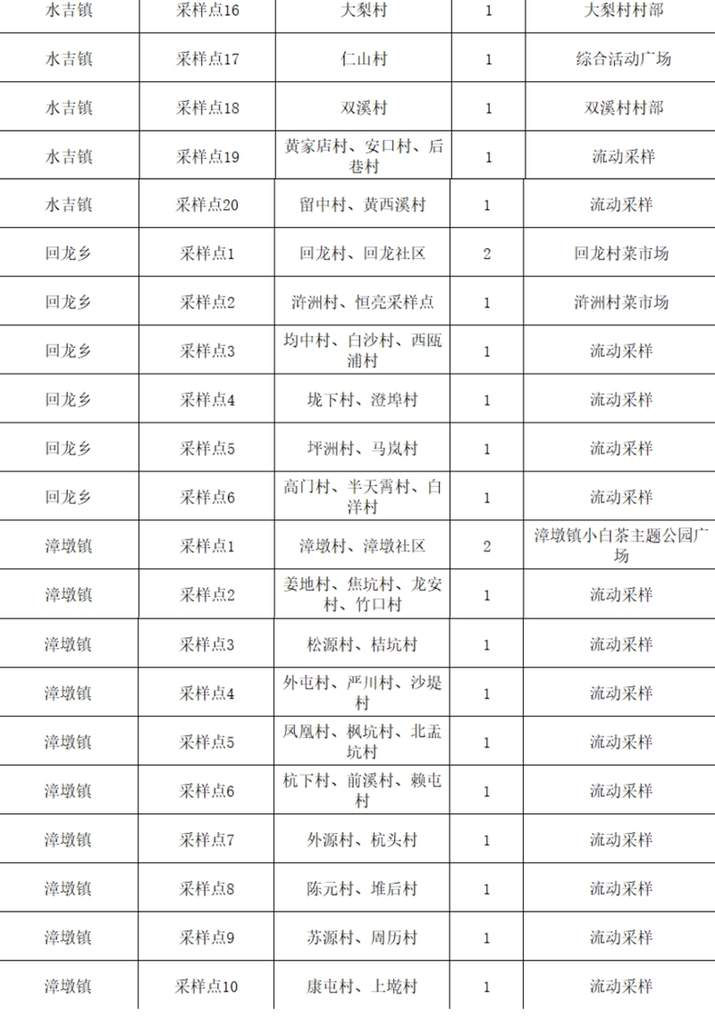 南平市建陽區應對新冠肺炎疫情工作指揮部 關于開展區域全員核酸檢測的通告 〔2022〕3號 針對當前疫情防控形勢,為保障人民群眾身體健康和生命安全,南平市建陽區應對新冠肺炎疫情工作指揮部決定開展區域全員核酸檢測。現將有關事項通告如下: 一、檢測時間 2022年3月25日8:30-18:30 二、 參加檢測人員 建陽轄區范圍內工作、生活的所有人員(包括常住人口、暫住人口、臨時流動人口、外籍人口等)。 老弱病殘孕等行動不便的特殊人員,請提前向村(社區)報備,由各鄉鎮(街道)組織流動采樣隊上門服務。 三、不參加檢測人員 1. 3月25日8:30之前48小時內,已經接種過疫苗的人員; 2. 健康碼為紅碼、黃碼人員,居家隔離和集中隔離點人員; 3. 除24日晚居住在校內的教職員工及寄宿生在校內參加核酸檢測外,其余各校園(含民辦園、完小、教學點)教職員工及學生全部參加區域核酸檢測。 四、檢測地點 請按照所在村(社區)、企業通知的具體時間段,錯峰前往就近采樣點進行核酸檢測。具體詳見全區各鄉鎮(街道)核酸檢測采樣點一覽表(附后)。 五、注意事項 1.檢測現場需拉警戒線、實施人員管控、開展環境消殺等,請廣大市民朋友按照現場工作人員的引導有序參與。 2.為提高檢測效率,請廣大市民朋友務必在檢測前提前登錄福建省大規模核酸檢測登記平臺小程序,注冊申領核酸檢測預登記碼。 3.參加檢測時,請攜帶本人身份證、核酸檢測登記平臺核酸預登記碼,全程佩戴好口罩,按村(社區)通知的具體時段有序前往指定采樣點進行檢測。 4.檢測過程中,請廣大市民朋友服從現場工作人員的安排和指揮,做好個人防護,保持1米以上距離(采樣時方可取下口罩),避免相互聚集和交談;不要觸碰采樣人員防護服、檢測臺和檢測臺上的物品。檢測結束后,要立即戴好口罩,并盡快離開現場。 5.檢測期間,請無關人員不要圍觀;請廣大市民朋友關注官方渠道發布的疫情防控信息,不造謠、不信謠、不傳謠。對散播謠言者將依法追究法律責任。 6.對拒不配合、不執行本通告,干擾、阻撓疫情防控工作,瞞報、謊報、偽造信息的,將依法追究法律責任。 7.各鄉鎮(街道)要有序安排參檢人員分時段錯峰采樣。 8.各鄉鎮(街道)要預先發動參檢人員準備采樣碼,截屏或打印采樣碼。 9.此次檢測,不收取檢測費用。 特此通告。 南平市建陽區應對新冠肺炎 疫情工作指揮部 2022年3月25日 |