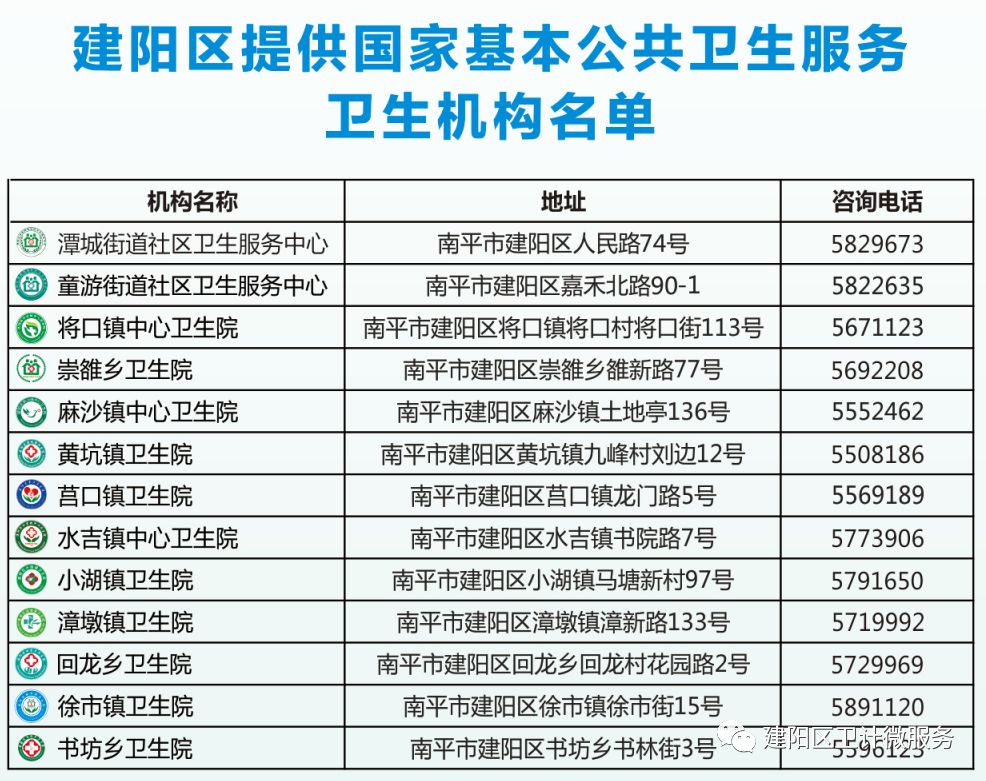 建陽區提供國家基本公共衛生服務的機構有哪些呢?