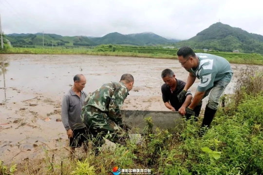 為確保春耕順利開展,保障糧食安全,將口鎮推出“黨建+防汛”工作模式,組織黨員干部全力以赴做好防汛搶修工作,以實際行動踐行共產黨員的初心與使命,全面構筑防汛“紅色堤壩”。 將口鎮嚴格落實24小時值班值守、“零報告”等制度,掛點領導、工作隊長、駐村干部等組成14支黨員志愿隊,第一時間下沉各村(社區),對河道、山塘水庫、地質災害點、易積水路段開展“拉網式”巡查,集中力量對重點河壩、溝渠進行整治,發現問題,及時整改,全力確保安全度汛。 一輪降雨后,將口鎮有200余畝農田因水渠被淤泥堵塞斷流導致水稻秧田被淹,嚴重影響春耕生產,目前已搶修水毀水渠1000余米。(章郁清) |