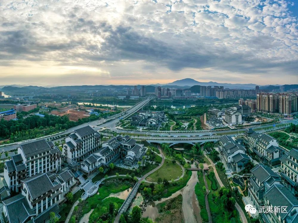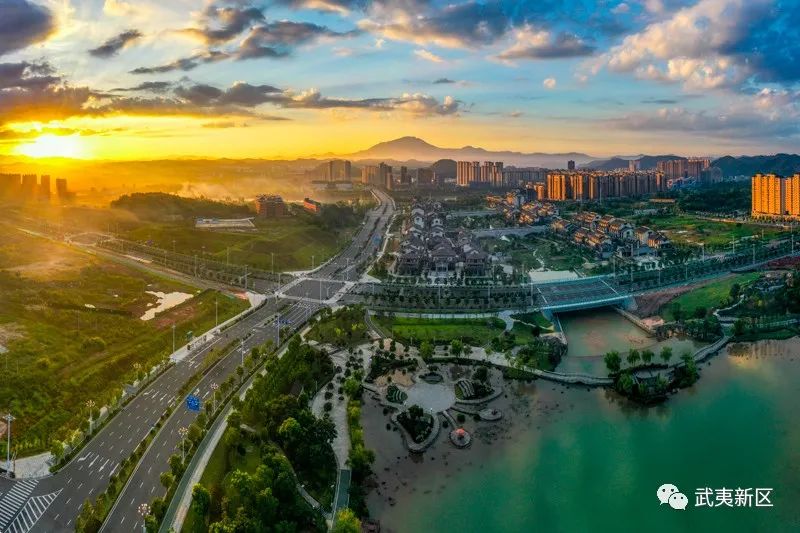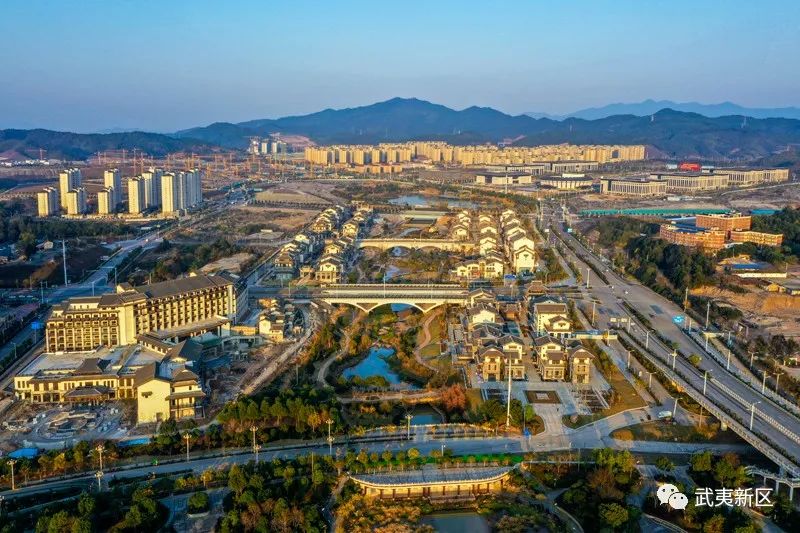 ▲武夷新區“水之廊”景觀帶及武夷山水城全景 (鄭惠平 攝)
