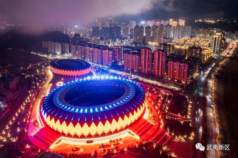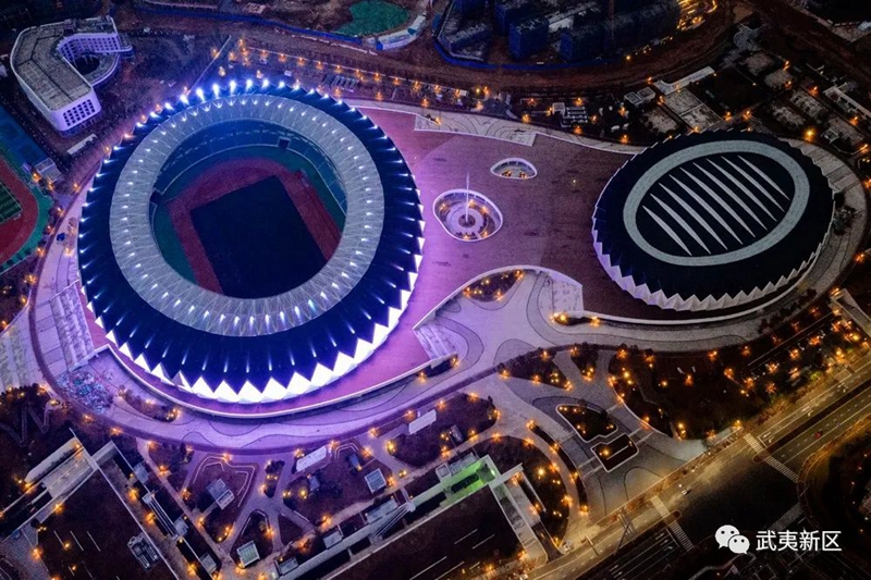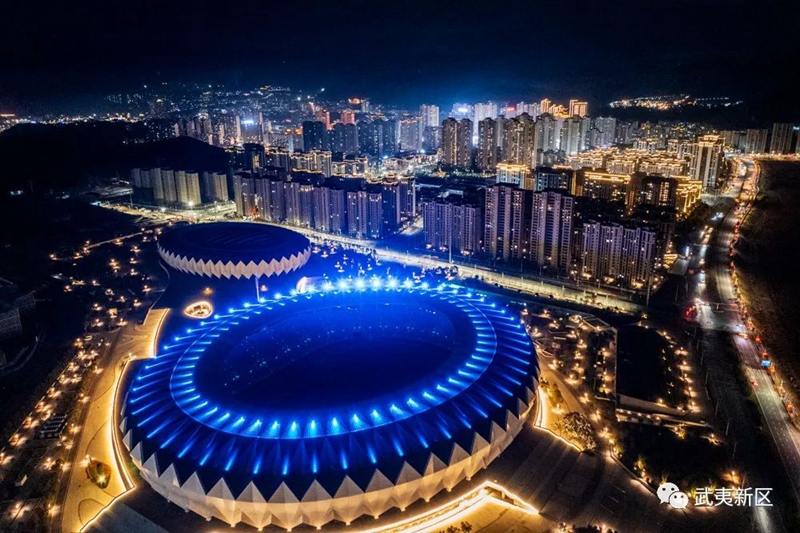 武夷新區體育中心場館夜景(鄭惠平 攝)