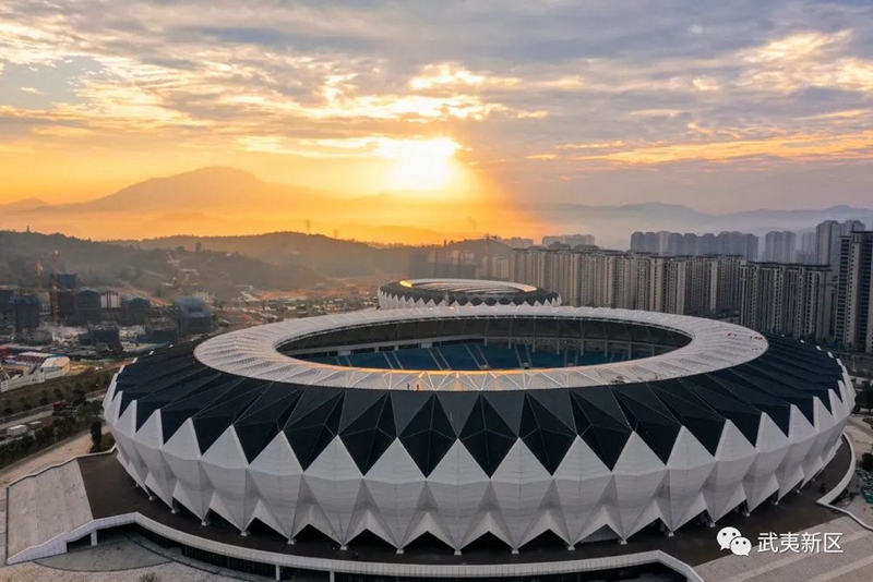 武夷新區體育中心田徑場館朝陽(鄭惠平 攝)