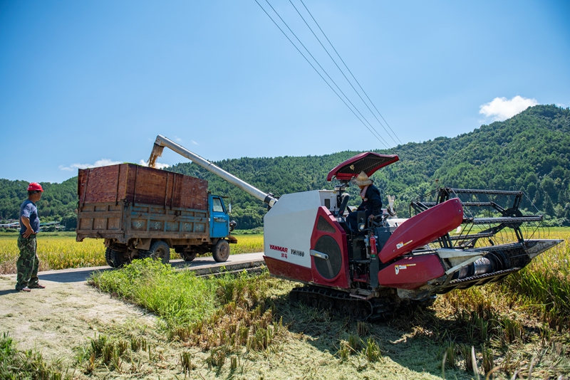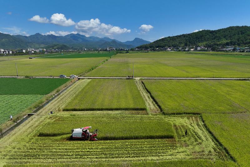 8月8日,記者走近建陽區(qū)水吉鎮(zhèn)吉豐農(nóng)機專業(yè)合作社的再生稻示范片,金黃色的稻穗迎風起伏,飄來一陣陣稻谷的芳香。一臺臺大型收割機在稻田中來回穿梭,搶季節(jié)、冒酷暑,加緊收割,確保稻谷顆粒歸倉。 建陽區(qū)農(nóng)業(yè)農(nóng)村局的技術(shù)人員也來到現(xiàn)場,對今年再生稻頭茬進行測產(chǎn),為全區(qū)糧食安全與可持續(xù)發(fā)展收集相關(guān)數(shù)據(jù)。建陽區(qū)農(nóng)業(yè)技術(shù)推廣站站長黃小華介紹道:“測產(chǎn)首先是選擇幾個測產(chǎn)點,每個測產(chǎn)點通過10個1畝的面積,測定10個點的產(chǎn)量,包括稻谷水分情況,最后折算出平均干谷產(chǎn)量。”