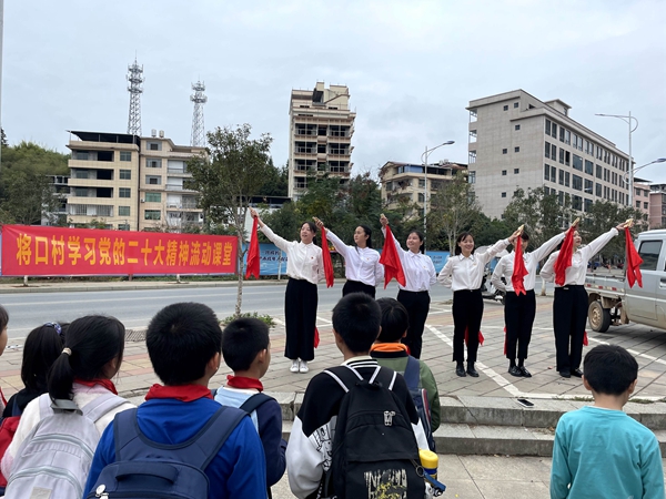 “春暖大地花盛開,昂首奮進新征程,振興鄉村展風采……”16日,在建陽區將口鎮圩日街頭,傳出一陣陣節奏明快的快板聲,由20余名黨員組成的“巾幗·紅”宣講隊為群眾帶來黨的二十大精神“快板宣講”。 活動中,“巾幗·紅”宣講隊隊員們走上舞臺,精神抖擻地敲響竹板,用押韻通俗的唱詞、生動形象的表演,向觀眾宣傳黨的二十大精神,贏得陣陣掌聲。 “我們選擇了快板這種通俗易懂的形式,精心編排了音樂群口快板《貫徹落實二十大 振興鄉村正當時》,讓黨的二十大精神隨著快板聲入耳入心。”將口鎮黨委宣傳委員陳雯介紹,這段快板雖只有200余字,但在成稿過程中進行了多次修改,既接地氣又有內涵。 抑揚頓挫的快板節奏,通俗易懂的快板詞,快板宣講“聲”入人心,現場觀眾聽得認真、記得深刻,形成了濃厚的學習黨的二十大精神氛圍。 “快板宣講的形式非常好,我們聽得懂、聽得進,容易記,讓我們對黨的二十大精神有了更加深入地了解。”現場群眾看得津津有味。 群眾在哪里,宣講陣地就延伸到哪里。為推動黨的二十大精神進入千家萬戶,由鎮班子成員輪流帶隊“巾幗·紅”宣講隊深入村居、企業,走進農家小院、活動廣場、田間地頭,用群眾喜聞樂見的快板、知識問答等形式,在寓教于樂中推動黨的二十大精神深入基層、深入群眾。(馮悅穎) |