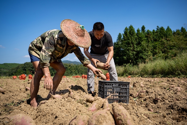 近日,在建陽區水吉鎮池中村的紅薯種植基地迎來了豐收,紅薯采收機器在地里來回穿行,一壟壟紅薯破土而出,個體飽滿,十分喜人。 看著個頭肥碩的紅薯,合作社負責人戴春生臉上洋溢著喜悅之情:“我們在農業技術人員指導下,使用新品種,新技術,紅薯主要種植品種為浙薯13號,合作社從最初的20畝發展到現在的500畝,在5月中旬煙葉才剛開采就開始套種,這樣就可以節省了打田、起壟、蓋膜、肥料等的費用,合起來節省約400元/畝。” 在地里剛出土的紅薯個個顏色鮮艷,擺滿了田間地壟,豐收在望的合作社農民臉上可是笑開了花,緊隨其后,熟練地翻撿剛出土的紅薯,然后篩選裝袋運送至轉運中心。 “我種植紅薯已經7、8年了,今年我們種植了500多畝,每畝產量在3500-4000斤左右。扣除成本我們收入可以達到1600-1800元/畝。事實證明,我們這里無論是氣候,還是土壤條件都很適合種植紅薯。”戴春生說,目前紅薯主要還是運到浙江進一步加工,下一步計劃就近建紅薯加工廠,不僅可以節約運輸成本,還能減少運輸過程中造成的損失,保障紅薯質量。(陳燕萍 陳琦輝) |