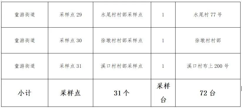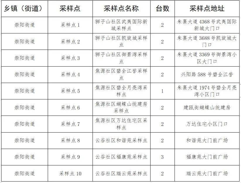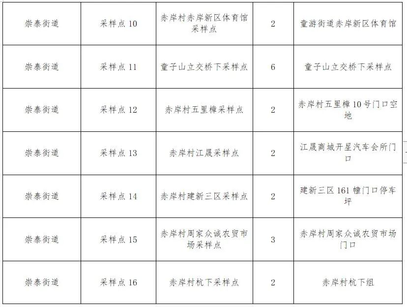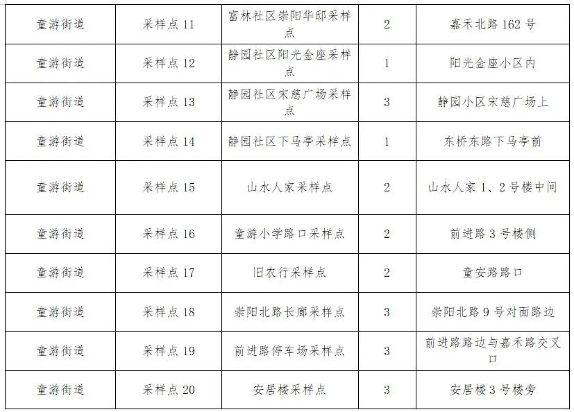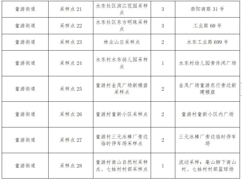 關于開展區域核酸檢測的通告 〔2022〕28號 針對當前疫情防控形勢,為保障人民群眾身體健康和生命安全,南平市建陽區應對新冠肺炎疫情工作指揮部決定開展區域核酸檢測(請參與檢測的人員做好個人防護,嚴格執行戴口罩、保持1米以上距離,采樣時方可取下口罩,避免相互聚集和交談;不要觸碰采樣人員防護服、檢測臺和檢測臺上的物品。檢測結束后,要立即戴好口罩,并盡快離開現場)。現將有關事項通告如下: 一、檢測時間 2022年12月7日07:00—15:00。 二、 參加檢測人員 潭城街道、寶山街道、童游街道、崇陽街道、崇泰街道范圍內工作、生活的所有人員(包括常住人口、暫住人口、臨時流動人口、外籍人口等)。 老弱病殘孕等行動不便的特殊人員,請提前向村(社區)報備,由各街道組織流動采樣隊上門服務。 三、不參加檢測人員 1.12月7日7:00之前48小時內接種過疫苗的人員; 2.持有24小時內核酸證明的人員; 3.健康碼為紅碼、居家隔離和集中隔離點人員(由服務隊上門采樣); 4.健康碼為黃碼人員,需提前向所在的村(社區)報告,由村(社區)安排聯系特定時間開展采樣工作; 5.已參與省運會閉環管理的人員不參加本輪區域核酸檢測。 四、檢測地點 1.請按照所在村(社區)、企業通知的具體時間段,錯峰前往就近采樣點進行核酸檢測。具體詳見全區各街道核酸檢測采樣點一覽表(附后)。 2.城區范圍內各中、小學校,幼兒園教職員工及學生在本校(園)參與核酸檢測。其中,橋南小學、第二實驗幼兒園、藍天幼兒園、英華幼兒園、金榜培訓機構教職員工及學生請按照所在村(社區)通知的具體時間段,錯峰前往就近采樣點進行核酸檢測。 五、注意事項 1.檢測現場需拉警戒線、實施人員管控、開展環境消殺等,請廣大市民朋友按照現場工作人員的引導有序參與。 2.為提高檢測效率,請廣大市民朋友務必在檢測前提前登錄閩政通APP,注冊申領福建健康碼或攜帶本人身份證參加核酸檢測。 3.參加檢測時,全程佩戴好口罩,按村(社區)通知的具體時段有序前往指定采樣點進行檢測。 4.檢測過程中,請廣大市民朋友服從現場工作人員的安排和指揮,做好個人防護,保持1米以上距離(采樣時方可取下口罩),避免相互聚集和交談;不要觸碰采樣人員防護服、檢測臺和檢測臺上的物品。檢測結束后,要立即戴好口罩,并盡快離開現場。 5.檢測期間,請無關人員不要圍觀;請廣大市民朋友關注官方渠道發布的疫情防控信息,不造謠、不信謠、不傳謠。對散播謠言者將依法追究法律責任。 6.對拒不配合、不執行本通告,干擾、阻撓疫情防控工作,瞞報、謊報、偽造信息的,將依法追究法律責任。 7.此次檢測,不收取費用。 特此通告。 南平市建陽區應對新冠肺炎疫情工作指揮部 2022年12月6日 南平市建陽區核酸檢測采樣點一覽表 潭城街道 寶山街道 童游街道 崇陽街道 崇泰街道 |