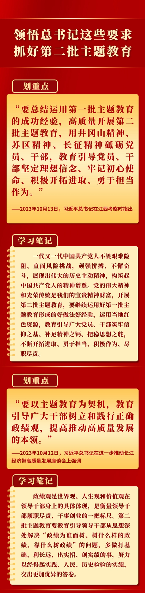 當(dāng)前,第二批學(xué)習(xí)貫徹習(xí)近平新時(shí)代中國(guó)特色社會(huì)主義思想主題教育扎實(shí)推進(jìn)。9月以來,習(xí)近平總書記在黑龍江、浙江、江西考察時(shí),對(duì)第二批主題教育工作提出明確要求,為持續(xù)開展好這件“事關(guān)全局的大事”指明方向。一起學(xué)習(xí)。