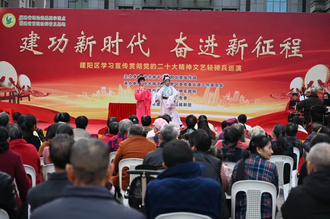 12月1日,“建功新時代 奮進新征程——建陽區學習宣傳貫徹黨的二十大精神文藝輕騎兵巡演”來到崇泰街道,用舞蹈、快板、越劇等形式向群眾宣講黨的二十大精神。 本次活動由中共南平市建陽區委宣傳部主辦,中共南平市建陽區委崇泰街道工作委員會、崇泰街道新時代文明實踐所、崇泰街道濯錦社區黨委、南平市建陽區弘揚越劇團承辦。 演出在一曲歡樂的斗笠舞《走進新崇泰》中拉開序幕,越劇、詩朗誦等十余個節目輪番上演。為在場市民群眾獻上了一場文藝的盛宴,花團錦簇的舞蹈、優美婉轉的歌聲和激昂動聽的旋律,讓現場的喝彩聲、鼓掌聲此起彼落,氣氛熱鬧非凡。 在互動問答環節,大家爭相舉手搶答,問答內容涵蓋了文明城市創建、主題教育等相關知識,大家踴躍搶答,現場氣氛熱烈、精彩紛呈。 此次演出活動以“建功新時代 奮進新征程”為主題,結合文明城市創建、黨的二十大精神、主題教育等內容,通過形式多樣的文藝節目推動黨的二十大精神入腦入心、走深走實,真正做到讓群眾喜歡看、看得懂。 后續,崇泰街道將繼續深入村居、深入基層,利用理論宣講、知識問答、志愿服務等多種方式助力黨的二十大精神、主題教育及文明城市創建深入人心。 |
