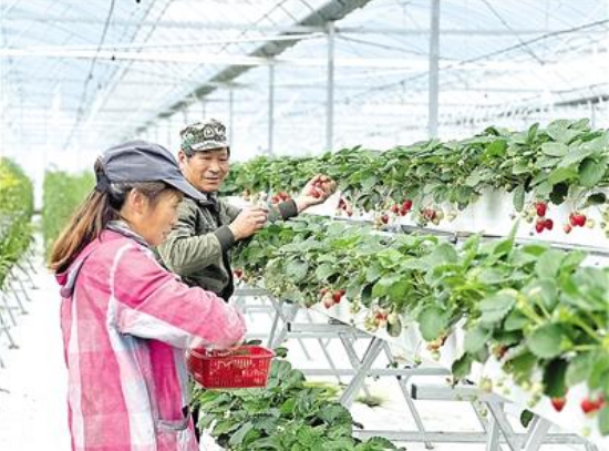 近日,位于光澤縣崇仁鄉崇仁村的崇仁農業科技示范園正式開園。該示范園占地面積約103畝,建有水培區、基質培育區、地栽種植區、百米瓜果長廊和農業科技展示中心,集種植、培育、采摘、研學于一體,旨在通過科技賦能農業發展,帶動村民村財雙增收。圖為農戶在大棚內采摘草莓。(黃文靜 攝)