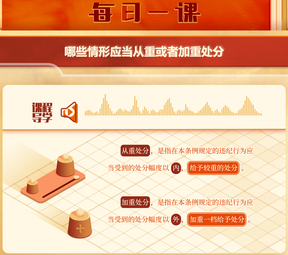 《中國(guó)共產(chǎn)黨紀(jì)律處分條例》規(guī)定,紀(jì)律審查中有下列行為之一的,應(yīng)當(dāng)從重或加重處分: (一)強(qiáng)迫、唆使他人違紀(jì)。 “強(qiáng)迫他人違紀(jì)”,是指在被強(qiáng)迫的黨員沒有違紀(jì)主觀故意情況下,違背其意志,采取脅迫等手段迫使其違紀(jì)的情形。 “唆使他人違紀(jì)”,是指教唆、挑動(dòng)、指使其他黨員違紀(jì)的情形。 (二)拒不上交或者退賠違紀(jì)所得。 (三)違紀(jì)受處分后又因故意違紀(jì)應(yīng)當(dāng)受到黨紀(jì)處分。 這就是通常所說(shuō)的“再犯”,指黨員因違紀(jì)受到黨紀(jì)政務(wù)等處分后,又再次實(shí)施了應(yīng)當(dāng)受到黨紀(jì)處分的故意違紀(jì)行為。 (四)違紀(jì)受處分后,又被發(fā)現(xiàn)其受處分前沒有交代的其他應(yīng)當(dāng)受到黨紀(jì)處分的問題。 這就是通常所說(shuō)的“漏錯(cuò)”。構(gòu)成漏錯(cuò)的條件,主要包括以下三個(gè):一是違紀(jì)黨員前一次受到的是除開除黨籍以外的黨紀(jì)處分,或者是政務(wù)處分等處分;二是遺漏違紀(jì)行為必須是在處分決定生效后發(fā)現(xiàn)的;三是遺漏違紀(jì)行為必須是在處分決定生效以前實(shí)施的。 黨員受處分后又被發(fā)現(xiàn)此前未交代的違紀(jì)行為,說(shuō)明其在前次組織審查期間,對(duì)黨不忠誠(chéng)、不老實(shí),沒有如實(shí)向組織交代自己存在的應(yīng)當(dāng)受到黨紀(jì)處分的違紀(jì)問題,必須從嚴(yán)懲治。 (五)黨內(nèi)法規(guī)規(guī)定的其他從重或者加重處分情形。 |