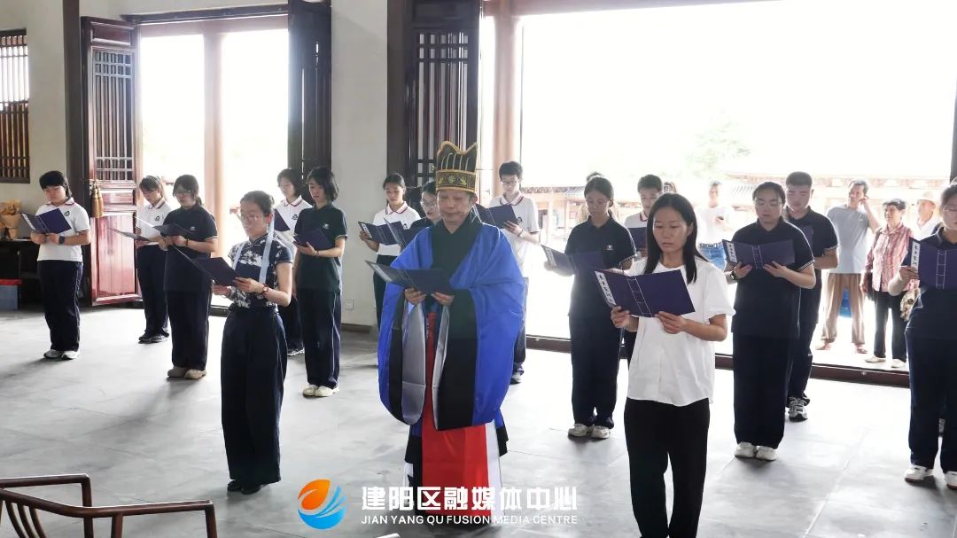 7月1日,上海市甘泉外國語中學“朱子文化行”研學營開營儀式在建陽區考亭書院集成殿舉行。 開營儀式上,上海市甘泉外國語中學“朱子文化行”研學營的師生們以傳統尊師儀式“釋菜禮”祭拜朱子、致敬恩師。鼓樂響起,司儀宣布開營儀式開始,獻官升堂點閱,沃盥、焚香、祭酒、獻芹流程有序進行,祝者恭讀祝文,全體與祭者向朱文公行再拜禮,全體學生行拜師禮。優秀教師代表及學生代表發言,獻官向學生代表授營旗。獻官訓示后全體師生齊誦《朱子家訓》。 隨后,華東師范大學終身教授、中華朱子學會常務副會長、考亭書院山長朱杰人教授向大家介紹了考亭書院,并分享了《滄洲精舍諭學者》《滄洲精舍又諭學者》,引導學生們要胸懷天下,志存高遠。 研學營學生劉沐蕓:“這次‘釋菜禮’讓我感受到了濃厚的朱子文化,整個儀式是非常莊嚴隆重的,我是第一次體驗這種古代的儀式,感到非常的新奇?!保?/span>江潔) |