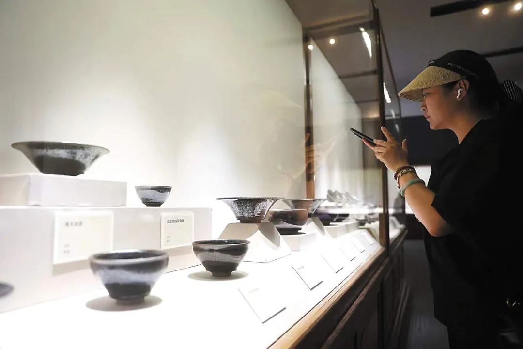“紫玉甌心——中國建窯建盞文化展”現場 記者 盧旭 攝 建窯也稱“水吉窯”,因位于宋代建安、甌寧二縣治所所在地建州而得名,是中國古代生產黑釉瓷器的重要窯場,亦是福建地區的代表性窯場。建窯創燒于晚唐五代,歷經兩宋的繁榮,至宋末元初逐漸衰落。建盞是建窯的代表性產品,器型特點為口大足小,形似漏斗,以束口盞最具特色。其整體風格樸實穩重,造型飽滿剛健,富有優美的曲線變化,是福建地區陶瓷生產悠久歷史與精湛工藝的象征。 近日,由中國國家博物館、福建省文化和旅游廳主辦的“紫玉甌心——中國建窯建盞文化展”在國博開幕。展覽展出135件古代建窯建盞及相關文物和298件當代建窯工藝品,分為“古韻悠長”“啜英咀華”“星河流轉”“匠心獨運”“薪火相傳”5個單元,從考古發現、文化內涵、藝術風韻、工藝傳承創新、新時代新發展等角度,系統全面地展示了建窯建盞的歷史文化、藝術價值和工藝創造。 回望:茶與器相生相伴 “老龍團,真鳳髓,點將來。兔毫盞里,霎時滋味舌頭回。”蘇軾在《水調歌頭·問大冶長老乞桃花茶》中描述了使用建盞喝茶的情景。 建盞的釉面主要分為黑色和雜色兩大類。黑釉是建窯的標準釉面,分為烏黑、紺黑和青黑等類型,特征為釉層細膩堅致,具有較強的玻璃質感。在入窯燒制的過程中,釉料自然呈現出各種復雜多變的紋理,稱為“窯變”。建盞的窯變花紋,大致可分為兔毫、油滴、鷓鴣斑和曜變等種類。雜色釉是建窯次生的顏色,包括醬釉、青綠釉和灰釉等。 我國古代的茶藝,在唐以前流行煮茶法,方式較粗獷。唐代改進為烹茶法,逐漸向細煎慢品的方向發展。宋代是中國古代經濟和文化高速發展的時期,社會生活呈現平民化、世俗化和人文化的趨勢。宋人不斷從日常生活的細節中提煉高雅的情趣,注重精神和意境的追求,為后世的社會生活奠定了風雅的基調。南宋吳自牧《夢粱錄》中記載的“燒香點茶,掛畫插花,四般閑事”,正是宋代文人閑適雅致生活的體現,點茶即為其中之代表。建盞的興起,與兩宋茶事的風靡密不可分,因“茶色白,宜黑盞”,建盞備受文人士大夫階層的推崇,成為宋代斗茶習俗的首選茶具。 “古韻悠長”“啜英咀華”從建窯建盞的發展歷程、建盞與宋代茶文化的關系出發,向觀眾全面展示了我國“茶與器”的相生相伴。 品鑒:平淡乃絢爛之極 “兔毫紫甌新,蟹眼清泉煮。”“冰瓷瑩玉,金縷鷓鴣斑。”對“兔毫”“鷓鴣斑”的推崇,體現了宋人以人工造作實現自然紋理的理念和追求,更符合平淡乃絢爛之極的宋代美學思想。建盞是創造性的手工勞動和因材施藝的個性化制作相結合的產物,其造型收放適度,展現了舒展典雅的風韻。建盞最主要的藝術特征在于,每件產品的釉面紋理均為燒制中自然產生,復雜多變且具有唯一性。 當代建盞在保留傳統風格的基礎上,釉面更加多彩絢麗,造型根據實用性、藝術性需求進行重塑,實現了建盞的個性化和多元化發展。 與古代建盞相比,當代建盞的藝術和審美特征已有很大變化。現代陶瓷科技的發展,不僅提高了建盞的成品率,釉面也突破了黑色的局限,出現了新的肌理,晶體效果更是炫目多彩,進一步提升了建窯瓷器的藝術表現力。除了對傳統技藝的繼承,當代的陶藝家還吸取國內外各種文化和藝術風格進行融合和創新,注重創新和個性化的設計風格,有實用性和美觀性兼具的特點。 “星河流轉”“匠心獨運”對兔毫、油滴、鷓鴣斑和曜變等種類作了詳細介紹,展現了當代建盞的藝術特征、美學創新和精湛工藝。 傳承:紫玉甌心煥發時代光彩 范仲淹的《和章岷從事斗茶歌》中有:“黃金碾畔綠塵飛,紫玉甌心雪濤起。”因少數建盞在光線照射下散發紫色的光暈,故有文人以“紫玉甌”或“紫甌”形容建盞。“紫玉甌心——中國建窯建盞文化展”的名稱即出自于此。 歷經近千年歲月滄桑,建窯建盞在20世紀80年代復蘇。1979年,經中央工藝美術學院倡導,南平成立“恢復宋代建窯兔毫釉產品”科研攻關小組,由福建省輕工研究所立項并負責項目實施。歷經一年多的試驗和探索,成功研制出仿宋兔毫盞。此后,油滴釉、鷓鴣斑釉、曜變釉等品種陸續復燒,失傳數百年的建盞工藝終于重現光彩。 近年來,南平市建陽區積極推動中華優秀傳統文化創造性轉化、創新性發展,精心打造“建窯建盞”品牌,推動建盞產業不斷煥發新的生機與活力。2011年,建窯建盞燒制技藝被列入第三批國家級非物質文化遺產代表性項目名錄。當代建盞傳承人在繼承和發揚傳統工藝的基礎上,從新時代審美的角度重新思考和改進,充分利用現代科技手段,創造出種類繁多的釉面和器型,極大地豐富了建窯建盞的藝術風格和文化內涵。 自2017年起,建陽區已陸續舉辦了三屆中國建窯建盞文化博覽會,建盞先后在金磚國家領導人廈門峰會、巴西金磚五國峰會期間被作為國禮贈送給外賓,日益成為國內外政治經濟交流的重要禮品。 “薪火相傳”以建窯建盞的復蘇為脈絡,展現建盞在新時代煥發光彩的良好發展局面。 |