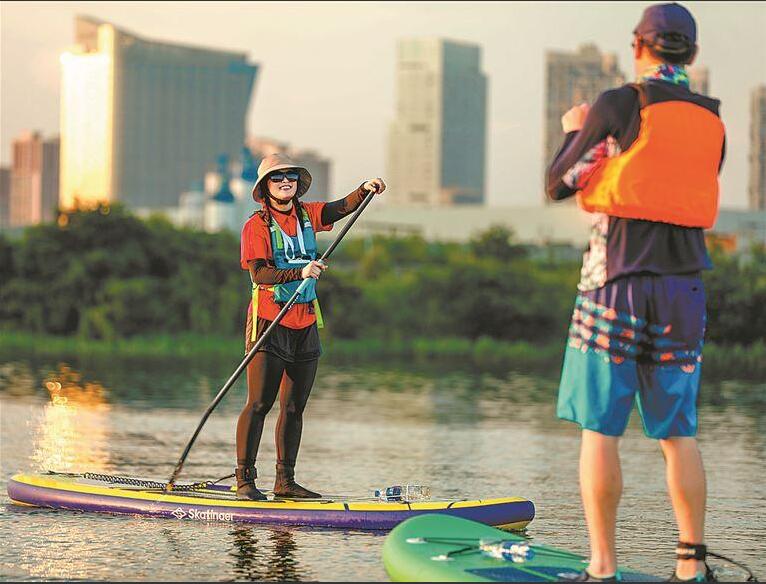 水上運(yùn)動(dòng)愛好者在月光環(huán)前劃皮劃艇。 體驗(yàn)者在槳板上打卡杏林灣之美。 廈門日?qǐng)?bào)訊(記者 盧劍豪 攝影報(bào)道)昨日下午5時(shí)許,園博苑月光環(huán)水上運(yùn)動(dòng)生活館的教練帶領(lǐng)水上運(yùn)動(dòng)愛好者們體驗(yàn)皮劃艇和槳板,在水天一色的杏林灣啟航。 波光粼粼的湖面蕩起陣陣漣漪,遠(yuǎn)處的杏林閣與月光環(huán)漸漸同框,岸上是園博苑秀麗的風(fēng)景,耳邊是浪花翻涌的聲音,不時(shí)有水鳥掠過水面,偶有游魚騰躍而起,令人心曠神怡。 月光環(huán)水上運(yùn)動(dòng)生活館由多位國家級(jí)槳板教練員、裁判員共同創(chuàng)立,日常開展專業(yè)化槳板運(yùn)動(dòng)培訓(xùn)和青少年水上運(yùn)動(dòng)安全公益宣傳,旨在打造廈門首個(gè)一站式水上運(yùn)動(dòng)集合空間。 |