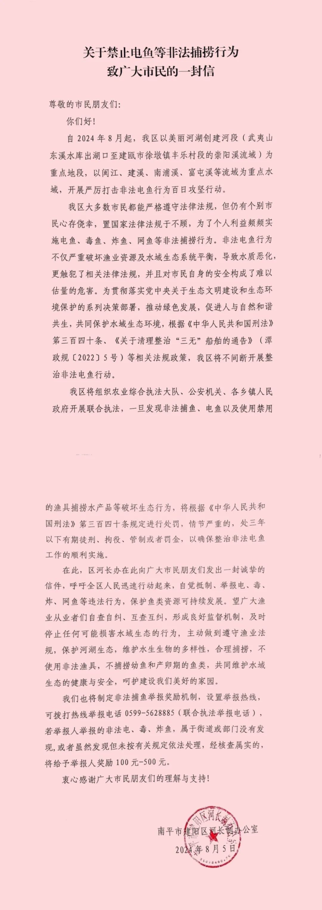 關于禁止電魚等非法捕撈行為致廣大市民的一封信