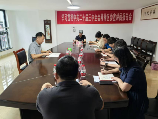 根據建陽區委統一安排,近日,學習貫徹黨的二十屆三中全會精神區委宣講團赴區各民主黨派等開展宣講。區委宣講團成員、區委統戰部常務副部長張文魯作宣講報告,區各民主黨派成員、無黨派人士、新聯會成員等黨外代表人士聆聽了報告會。 報告會上,張文魯圍繞深刻把握中共二十屆三中全會的重要意義,深刻認識新時代全面深化改革的重大成就,深入學習領會習近平總書記在中共二十屆三中全會上的重要講話精神,全面準確理解進一步全面深化改革的重大舉措,全力以赴抓好全會精神貫徹落實等方面,對全會精神進行全面宣講和深入闡釋。 與會的黨外人士一致表示,宣講會主題鮮明、內容豐富、深入淺出,對大家全面理解和準確把握全會精神很有啟發和幫助。并將把學習好貫徹好中共二十屆三中全會精神作為當前和今后一個時期的重大政治任務,切實把思想和行動統一到黨中央關于進一步全面深化改革的各項決策部署上來,結合自身實際,深入調查研究、積極建言獻策,為全面推進中國式現代化建陽實踐貢獻黨外人士的智慧和力量。 會后,張文魯還前往南平市建陽區曉富種子有限公司,與公司高管開展面對面互動交流,圍繞提升企業新質生產力、保障種子安全等內容進行深入探討。 為深入學習貫徹黨的二十屆三中全會精神,激勵國有企業黨員干部職工勇于擔當、奮發有為,近日,學習貫徹黨的二十屆三中全會精神區委宣講團在建陽城投集團進行宣講。區委宣講團成員、區財政局副局長譚良華作宣講報告, 報告會上,譚良華從“黨的二十屆三中全會是在以中國式現代化全面推進強國建設、民族復興偉業的關鍵時期召開的一次十分重要的會議”“深刻認識新時代全面深化改革的重大成就”“深入學習領會習近平總書記在黨的二十屆三中全會上的重要講話精神”“全面準確理解《決定》提出的進一步全面深化改革重大舉措”“全力以赴抓好全會精神貫徹落實”等五個方面,并結合黨的建設、省委“三爭”行動、市委“五增”目標、區委“12345”發展戰略及國有企業改革發展實際,對黨的二十屆三中全會提出的新概念、新觀點、新論斷作了全面系統、重點突出的宣講和闡釋。 報告會后,譚良華還與集團領導班子成員及部分員工代表進行座談交流,就黨的二十屆三中全會對國企改革提出的改革方向和重點、惠民物業公司在各領域如何守正創新、提質增效等話題進行闡釋解答、互動交流。 |