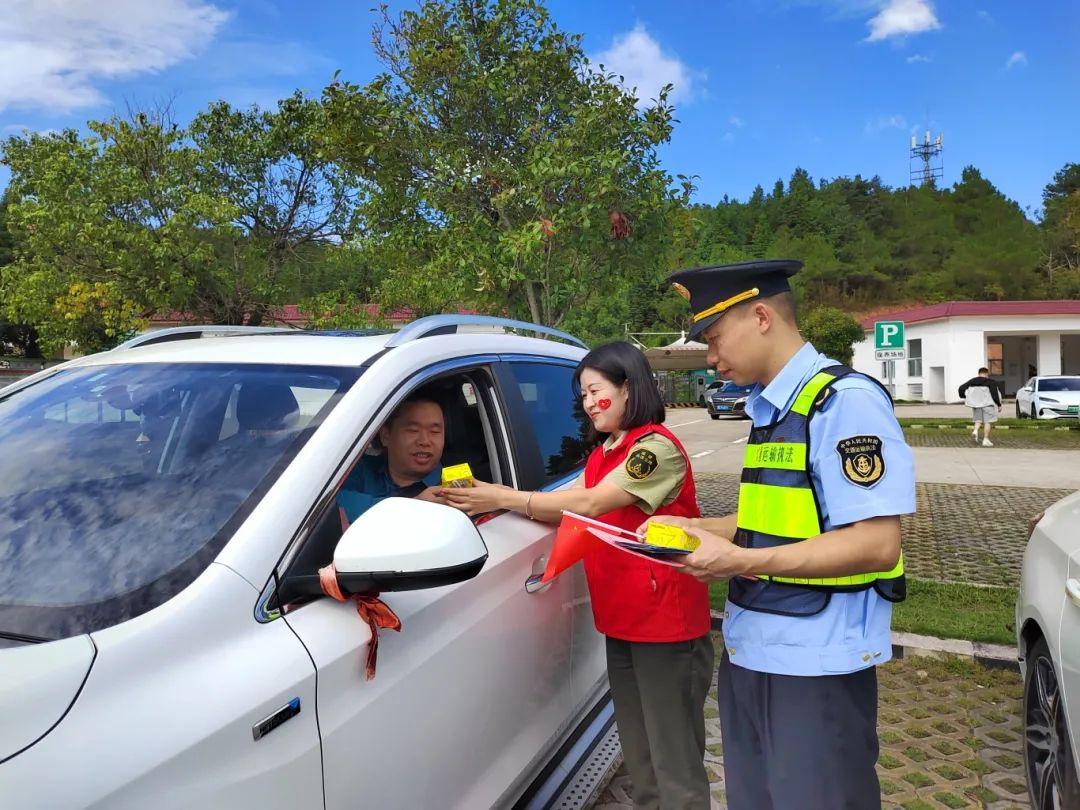 國慶假期,很多市民朋友選擇自駕車外出游玩,高速出行也成為大家的首選。在南平高速,有這么一群人,他們在假期里放棄休息時間,為途經司乘人員提供力所能及的志愿服務,成為“國慶”假期一道亮麗的高速風景。 “小妹妹,阿姨幫你貼上國旗貼紙,我們一起慶祝節日,好不好?”假期首日,南平高速建陽管理中心聯合南平高速執法支隊四大隊在仁山服務區開展志愿服務,免費發放暖心食品、節日飾品,活動現場為過往司乘人員解答高速出行疑難困惑問題,宣傳高速交通安全知識,協助服務區工作人員疏導交通……志愿者熱情的服務,保障人民群眾平安順暢出行,提升人民群眾假期出行的幸福感。(葉寶花) |
