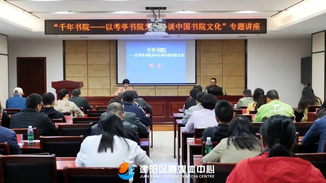 報告會邀請了福建省百場社科報告團成員祝熹老師作《千年書院——以考亭書院為中心談中國書院文化》專題講座。講座從考亭書院教育之精神、寒泉精舍圣賢氣象、書院教育在于立志為圣等三個方面深入闡釋中國書院文化的豐富內涵,旨在發揮社科界專家學者在理論武裝工作中的重要作用,推進黨的創新理論在基層落地生根,奮力譜寫中國式現代化建陽篇章。(戴秋霖)