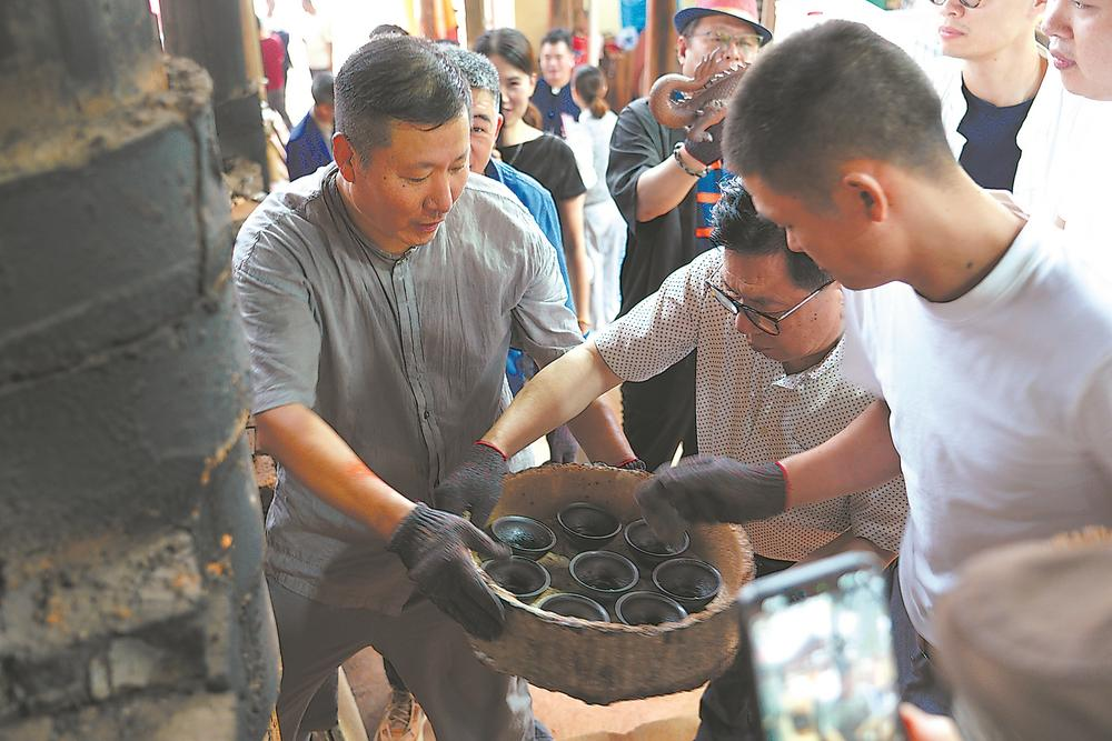 全國重點文物保護單位——水吉建窯遺址 吳大灼 近日,“紫玉甌心——中國建窯建盞文化展”在中國國家博物館圓滿落幕。 展覽期間,135件古代建窯建盞及相關文物與298件當代建窯工藝品交相輝映,共同勾勒出建盞跌宕起伏的傳奇畫卷,吸引了許多參觀者駐足觀賞。 建盞,也出現在許多國家的博物館內,這一誕生于宋代的黑釉瓷茶器,伴隨著對外貿易和文化交流的大潮,沿著“海上絲綢之路”漂洋過海,遠銷海外。 建窯,因地處宋代建州府而得名,是我國古代燒制黑釉瓷器的重要窯場。建盞作為建窯的扛鼎之作,更是宋代“八大名瓷”中黑瓷的典范。 建盞創燒于晚唐五代,歷經兩宋輝煌,至宋末元初式微,燒制工藝一度失傳。直至上世紀80年代,經搶救性復燒,建盞才得以浴火重生,成為建陽乃至南平光彩奪目的文化名片。 建盞出窯 蔡沁妍 攝 歷經明滅 窯火不熄 建窯遺址位于今南平市建陽區水吉鎮的后井村、池中村一帶,呈環狀分布,總面積約12萬平方米,10條窯爐多依山而建,形如巨龍斜臥,故名龍窯。其中,大路后門窯址3號窯爐長135.6米,單次可裝燒10萬件以上器物,雄踞國內龍窯之首。 建窯創燒于晚唐五代時期,初期規模不大,主產青釉、醬釉瓷。步入宋代,建窯蓬勃興盛,窯火熊熊。北宋初期,赫赫有名的黑釉碗盞——“建盞”問世。 “作為建窯的代表性產品,建盞口大足小,形似漏斗,以束口盞最具特色。其風格質樸穩重,造型飽滿剛健,富有優美的曲線變化,是福建地區陶瓷生產悠久歷史與精湛工藝的象征。”南平市建陽區建盞文化產業研究發展中心副主任陳艷說。 建陽建盞文創園 吳大灼 攝 建盞釉色變化萬千,紋理極具東方韻味,分為烏金、兔毫、油滴、鷓鴣斑、曜變、雜色釉等品種。 器為茶之父,建盞作為茶器,與茶文化興衰與共。建州自古便是福建重要的茶葉產區,陸羽曾在《茶經》中盛贊建州茶“往往得之,其味極佳”。 北宋太平興國二年(977年),建安地區北苑設立專制貢茶的茶院,建州茶遂聲名鵲起。北宋中期,福建路轉運使蔡襄鉆研建州民間斗茶習俗,著就《茶錄》。自此,斗茶之風遍及華堂綺室、市井閭巷,茶煙裊裊,蔚為大觀。 《茶錄》載:“茶色白,宜黑盞。”彼時斗茶,以茶沫“色白為貴”。相較于其他茶器,黑釉的建盞與點茶時泛起的白沫碰撞出強烈的色彩反差。盞上兔毫、鷓鴣斑、油滴等紋飾,經茶水浸潤、折射,又添得幾許明快色彩。且建盞胎體厚重,利于茶湯保溫。如此魅力,讓建盞一躍成為斗茶首選。 建盞亦是宋徽宗趙佶的“案頭好”,他曾留下“螺鈿珠璣寶合裝,玻璃甕里建芽香。兔毫連盞烹云液,能解紅顏入醉鄉”等佳句。建盞一時風光無二。 南宋末年,民生凋敝,閩地黑釉瓷燒造中心南遷。市場變幻、審美遞嬗、茶俗更易……建窯遂改燒青白瓷器,建盞燒制工藝逐漸失傳。 直到上世紀60年代,考古人員發掘建窯遺址,歷經多年,終于基本梳理出建窯建盞自宋以降的發展脈絡。 隨著建盞考古發現的重大進展,建盞燒制技藝的復興之路也隨之啟航。1979年,由中央工藝美院、福建省科委、福建省輕工所、建陽瓷廠等聯合組成的攻關小組,開始仿古建盞實驗,終于在1981年研制出仿宋兔毫盞。此后,油滴、鷓鴣斑、曜變等品種陸續復燒成功。 進入新世紀,建窯建盞迎來了嶄新的歷史機遇:2001年,建窯遺址被列為第五批全國重點文物保護單位;2011年,“建窯建盞燒制技藝”被列入第三批國家級非物質文化遺產代表性項目名錄;2016年,建盞獲評國家地理標志保護產品;2022年,建陽建窯遺址入選第二批省級考古遺址公園…… 千秋歲月,恍若須臾,窯火歷經明滅,而今長燃不輟。 “相較于古代建盞,當代作品將傳統的建盞形態進行重塑和演繹,釉面突破黑色局限,出現了新的肌理,晶體效果更炫目多彩。”陳艷贊嘆道。 建盞作品“福祿雙至” 張少杰 攝 盞中星辰 輝耀海外 行至窯址西側不遠處,但見南浦溪潺潺而流。千年前,這里也曾舟帆片片。順流而下,匯建溪,入閩江,直奔滄海;溯游而上,抵浦城,越仙霞,可至中原。福泉二港興盛于宋,為海上絲路開啟暢通之門,建窯瓷業亦隨潮而升。 “宋元時期,建盞與建窯系黑釉瓷通過海上絲綢之路遠銷異域,深受日本、朝鮮半島、東南亞國家和地區人民的喜愛,在世界陶瓷史、茶史、文化藝術史上具有獨特的歷史地位和作用。”福建省非物質文化遺產協會建窯專委會顧問謝道華介紹道。 有時,建盞并未像尋常瓷器那般被隨意放置在福船隔艙,而是被日本僧侶精心裝裹于隨身經篋。宋時,日僧前赴后繼,前往浙江天目山拜師求經。歸國時,他們會帶走師傅的畫像和茶盞,既從禪宗“衣缽傳承”之俗,又合“茶禪一味”之意。 在最長的龍窯中經受高溫驟變,而后萬中選一,遠渡重洋。抵達東瀛的建盞已非尋常茶器,執盞者往往非富即貴。 日本南北朝時期(1336—1392年),新興武家貴族盛行斗茶,樂于炫耀建盞等茶具,一如《禪林小歌》所稱詠:“以擁有宋朝文物為榮耀,用它們來裝綴客廳,為聚會和酒宴助興吧!” 《大明別幅并兩國勘合》又載,永樂四年(1406年)正月十六日,明成祖朱棣賜予室町幕府足利義滿將軍“黃銅鍍金廂口足建盞一十個”,作為外交國禮。 成書于1511年的《君臺觀左右帳記》則記錄了足利義滿之孫足利義政所收藏的“東山御物”。其中提到,曜變是“建盞之無上神品”,值萬匹絹,油滴是“第二重寶”,值五千匹絹,兔毫