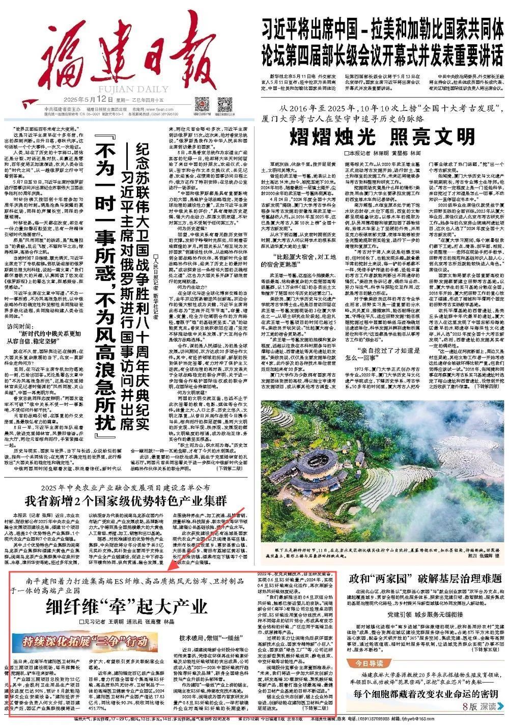 2025年5月12日,《福建日報》1版刊發 《細纖維“牽”起大產業》 全文如下 細纖維“牽”起大產業 連日來,在南平市建陽醫衛材料產業園三期項目建設現場,塔吊揮舞長臂,挖掘機、鏟車往來穿梭。 “產業園三期項目總投資約12億元。其中,金凱利衛生用品生產項目建設進度已達90%,預計8月就能陸續移交企業安裝設備。”建陽經濟開發區管委會負責人何文介紹,項目建成投產后,園區產業集群規模將進一步擴大,有望吸引更多關聯配套企業落地。 近年來,建陽錨定百億級產業集群目標,著力打造全國首個集高端ES纖維、高品質熱風無紡布、衛材制品于一體的高端醫衛健康專業產業園區。2024年,建陽醫衛材料產業園產值達17.83億元,同比增長90.3%,稅收同比增長451.77%。 技術破局,做細“一縷絲” 近日,福建閩瑞新合纖股份有限公司傳來喜訊,憑借在環保再生纖維素纖維及功能性纖維領域的突出成果,公司成功入選“2025—2026中國纖維流行趨勢推薦纖維及品牌”,躋身全國綠色科技與產業升級的頭部陣營。 作為建陽“一縷絲”產業上游的鏈主,閩瑞主攻ES纖維,持續攻克技術高地。 2020年,閩瑞成為國內首家研發并量產0.8旦ES纖維的企業,一舉打破境外企業對高端ES纖維的長期壟斷;2022年,攻克關鍵技術,自主研發裝備,實現0.6旦ES纖維量產;2024年,實現0.4旦ES纖維商業化運作,再次刷新全球熱風纖維細度紀錄。 “我們最新推出的0.4旦雙組分熱風纖維,觸感已接近嬰兒的皮膚。”閩瑞新合纖(南平)有限公司總經理卓志明介紹,ES纖維運用復合紡絲技術,將兩種不同熔點的切片結合,形成具有皮芯復合結構的纖維,廣泛應用于高端衛生巾、紙尿褲等產品。 過硬的實力讓閩瑞先后獲評國家高新技術企業、國家專精特新“小巨人”企業、國家級“綠色工廠”等,公司還研發出新型聚乳酸纖維絲束、靜電絲束、中空纖維等功能性產品。 閩瑞股份監事會主席董麗梅表示:“未來,我們將進一步加大研發創新力度,研發高端3D螺旋纖維、聚乳酸纖維等新產品,朝著打造全球最高端、最健全的衛材產業基地的目標不斷邁進。” 鏈主企業矢志創新,鏈上企業協同奮進,創新動能在建陽醫衛材料產業園層層迸發。 中游龍頭福建維盛新材料有限公司的高端熱風無紡布,正是閩瑞超細纖維的核心應用之一。其生產線配有世界一流的中倉混棉系統,專為0.8旦、0.6旦、0.4旦超細纖維熱風無紡布的高速穩定生產而造。去年,維盛新增專利12項,為布局高端市場筑牢根基;預計今年下半年,其與設備廠商合作研發的、目前全國最寬的熱風無紡布生產線即將投產。 “我們緊盯醫衛產業趨勢與市場需求,鼓勵企業研發布局前沿技術與產品,通過政企協同,營造創新生態。”何文說。 集群聚勢,做長“一縷絲” 走進維盛公司的車間,只見數條熱風無紡布生產線火力全開,纖維原料被迅速加熱熔化、打散交織,隨即冷卻固化成一卷卷無紡布。從投料到產出,全程由電腦自動化控制,每條巨龍般的生產線僅需1~2人值守。 維盛緊鄰閩瑞,通過廂式車與叉車的簡單配合,即可實現原料直供,每噸運輸成本降低約200元。 優質原料“零公里”供應,僅是園區眾多競爭力之一。 2020年底,閩瑞入駐園區。此后,建陽以其為核心持續延鏈、補鏈,維盛、歐帝姆等多家企業紛紛入駐。短短5年,園區“纖維—無紡布—終端個人護理衛品”產業鏈已完整成型。 在園區,“一縷絲”的技術精度,正轉化為產業的集群密度和發展速度。 上游的閩瑞屢攀高峰。中游的維盛技改成效顯著,2025年一季度滿產,喜迎開門紅。下游的歐帝姆、華綠、新潤等護理用品企業,建鑫精工、廣通機電等醫衛設備配套企業,發展勢頭迅猛。 上中下游緊密合作,“一縷絲”越織越密、越延越長。目前,園區有企業16家,其中規上企業7家;20個項目穩步推進,已投產9個、在建6個、待建5個。 維盛供應鏈總監李文瑞對此感觸頗深:“在激烈的市場競爭中,研發速度決定市場份額,反應時間至關重要。我們與園區上下游企業合作順暢、溝通高效。在產品功能性研發、消費者反饋等方面,能迅速調試樣品、追溯問題,搶占市場先機。” 今年,建陽持續強化“一把手”招商、產業鏈招商、基金招商、推廣合作招商等新模式。聚焦竹、ES纖維等重點產業鏈,小分隊精準出擊,力爭引入15個億元以上項目。 作者:見習記者 王玥明 通訊員:張高鷺 林晶(建陽區融媒體中心) 來源:福建日報 |