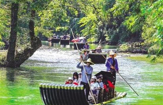 日前,游客在武夷山景區九曲溪乘坐竹筏,盡享夏日清涼。進入暑期,我市文旅部門圍繞“迎賓客、促消費”,在“1+3+3+N”特色產品體系基礎上,聚焦“白天游山水,夜晚品文化”,以“閩北民俗文化體驗+武夷山水清涼消暑”為主線,推出各類新品新業態、百余場特色活動及“吃住行游購娛”全鏈條暑期文旅優惠福利,大武夷暑期市場持續升溫。 (朱宇 林李冰 方詩琦 攝)