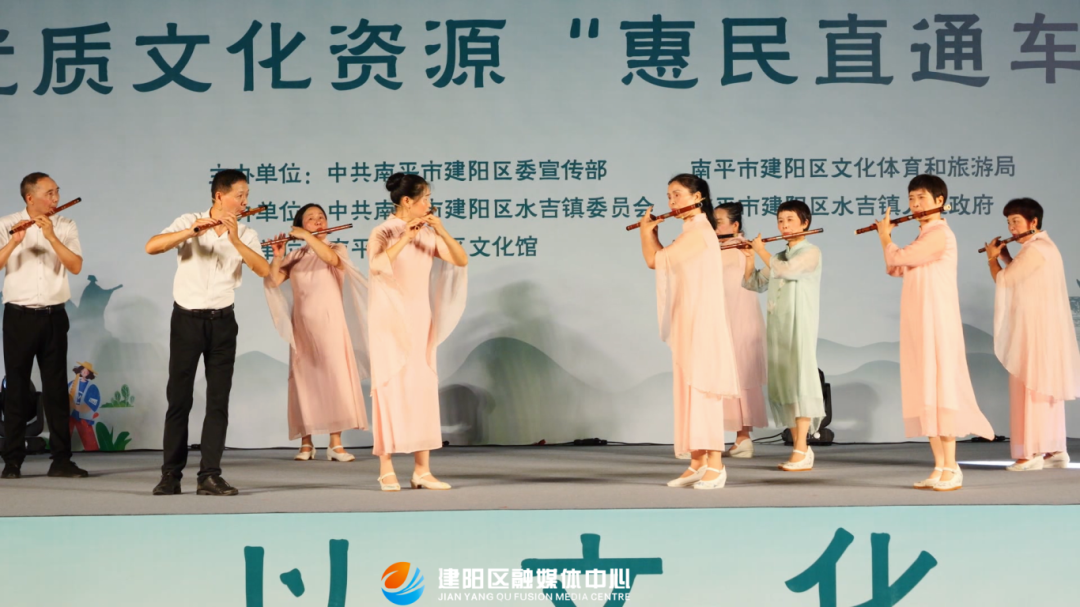 音樂響起來、燈光亮起來,現(xiàn)場掌聲經(jīng)久不息……8月12日晚,隨著夜幕降臨,建陽區(qū)水吉鎮(zhèn)大廟坪廣場被歡聲笑語和熱鬧氛圍所籠罩,一場精彩的演出為當(dāng)?shù)卮迕駧砹饲八从械奈幕⒀绾蜌g樂時光。同時,也正式拉開了“文潤潭陽”——建陽區(qū)優(yōu)質(zhì)文化資源“惠民直通車”系列活動的序幕。 黨的二十屆三中全會通過的《中共中央關(guān)于進一步全面深化改革、推進中國式現(xiàn)代化的決定》提出,建立優(yōu)質(zhì)文化資源直達基層機制。建陽區(qū)深入貫徹全會精神,直面基層公共文化服務(wù)“不解渴”、高品質(zhì)資源“下沉難”的痛點,按照省市部署,積極探索打造優(yōu)質(zhì)文化文藝直達基層公益演出的平臺載體,推出了“文潤潭陽”——建陽區(qū)優(yōu)質(zhì)文化資源“惠民直通車”系列活動,讓優(yōu)質(zhì)文化亮在基層、暖在民心。 當(dāng)晚節(jié)目精彩紛呈,舞蹈、宣講、器樂、合唱、文創(chuàng)秀等節(jié)目輪番登場。舞蹈《春日》帶領(lǐng)觀眾感悟朱子理學(xué)哲思,紅色宣講《戰(zhàn)斗英雄呂慕祥》深情回顧了我區(qū)抗美援朝英雄呂慕祥的事跡,歌曲《如愿》以溫情旋律傳遞對美好生活的向往,舞蹈《宋韻燈影》再現(xiàn)宋代文化風(fēng)情,《建盞文創(chuàng)秀》更將非遺之美與服飾藝術(shù)巧妙融合,讓觀眾近距離感受建陽建盞的千年韻味。最后,詩朗誦《建陽前景是美好的》以鏗鏘有力的語調(diào),描繪了建陽在新時代的發(fā)展藍圖,為整場演出畫上圓滿句號。演出中穿插的“知識問答環(huán)節(jié)”成為互動亮點,內(nèi)容圍繞建陽歷史文化、民生政策等方面展開,讓觀眾在歡樂互動中加深了對家鄉(xiāng)的了解。 “家門口的文藝表演可真不錯,節(jié)目豐富,還對我們老百姓的胃口,希望以后能多多舉辦。”水吉鎮(zhèn)建設(shè)村的群眾說道。 全天聯(lián)動:從書香氤氳到市集煙火 首站“惠民直通車”開進水吉,這場集文化浸潤、惠民展銷與文藝匯演于一體的盛宴,由建陽區(qū)委宣傳部、區(qū)文化體育和旅游局主辦,水吉鎮(zhèn)黨委、政府承辦,區(qū)文化館協(xié)辦。 活動從午后就已開始。在水吉鎮(zhèn)西瀾公益書吧“親子閱讀”活動中,十余組親子家庭圍坐共讀,不僅互相推薦優(yōu)秀兒童繪本、鄉(xiāng)土文化讀物等書籍,還在分享交流中建立閱讀交友關(guān)系,讓書香與文化傳承在互動中得以延續(xù)。 “沒想到她這么愛看書。繪本學(xué)習(xí)可以在孩子心中播撒下愛的種子,也有助于表達能力的提高,之后我會多多跟孩子一起閱讀繪本,幫助她成長。”參加“親子閱讀”的居民李媽媽開心地說。 在大廟坪廣場入口處,建本雕版印刷、宋代點茶等非遺技藝體驗人氣火爆,非遺傳承人手把手教學(xué),讓村民們近距離感受到非遺技藝的獨特魅力;一旁的圖書展銷檔口也人頭攢動,許多村民圍在展臺前,翻看自己心儀的書籍…… 傍晚時分,大廟坪廣場更加熱鬧起來。“農(nóng)特優(yōu)(七彩嘉禾)展銷”攤位前,仁山葡萄、建陽水吉扁肉等水吉特色產(chǎn)品以及小白茶、紅茶、水仙茶等建陽名優(yōu)特產(chǎn),吸引了不少群眾駐足選購;同步開啟的“地攤夜市”更是充滿煙火氣,特色小吃等攤位一字排開,叫賣聲、歡笑聲交織成一幅生動的鄉(xiāng)村夜生活畫卷。 惠民初心:讓文化浸潤百姓生活 建陽歷史悠久,文化璀璨,文脈綿長,近年來,區(qū)委、區(qū)政府把文化工作作為中心工作,通過“書香建陽”建設(shè),持續(xù)擴大“千年古縣 書香建陽”品牌效應(yīng),從城市到集鎮(zhèn),再到鄉(xiāng)村,均衡配置的潭陽書舍·公益書吧,在建陽處處“開花”。目前,全區(qū)已建成投用的公益書吧、閱讀空間達48家,閱讀面積近4000平方米,初步實現(xiàn)了城鄉(xiāng)全覆蓋,并以書吧為載體,常態(tài)化開展各類公益課堂和文化活動,讓書吧真正成為全民共享的文化驛站。 做好做足文化挖掘活化文章,推動建陽文化創(chuàng)造性轉(zhuǎn)化、創(chuàng)新性發(fā)展。激活朱子文化方面,從2015年啟動考亭書院恢復(fù)重建項目,到2016年重建鰲峰書院,再到廌山書院、寒泉精舍重建工程,各項舉措讓建陽塵封的書院文化重?zé)ㄉ鷻C。聚焦文旅融合方面,馬伏熹云灣項目以“文化+旅游+研學(xué)”為定位,布局30余個休閑業(yè)態(tài),打造了朱子文化研習(xí)館、文創(chuàng)市集等特色板塊,既讓游客沉浸式感受建陽文化魅力,又帶動了當(dāng)?shù)夭惋嫛⒚袼薜犬a(chǎn)業(yè)發(fā)展,實現(xiàn)了文化效益與經(jīng)濟效益的雙贏。保護農(nóng)耕文化方面,麻沙杜潭村致力打造“村秧”“村收”“村漂”等文旅IP,通過建設(shè)農(nóng)耕文化展覽館、二十四節(jié)氣文化主題公園,讓游客在體驗插秧、收割等農(nóng)事勞作中,觸摸農(nóng)耕文明的歷史脈絡(luò),傳承鄉(xiāng)村文化根脈。 與此同時,作為文化傳播的重要力量,建陽區(qū)著力打造一支高素質(zhì)、專業(yè)化的文化講解員隊伍,既突出“朱子、宋慈、建本、建盞”四大文化名片和建陽本土文化普及,又注重接待禮儀、言談舉止等外在形象提升,為建陽文化強區(qū)建設(shè)和高質(zhì)量發(fā)展注入新的活力。 今年以來,建陽區(qū)舉辦了文化科技衛(wèi)生“三下鄉(xiāng)”、大武夷·趣建陽文化大集、百姓大舞臺“春