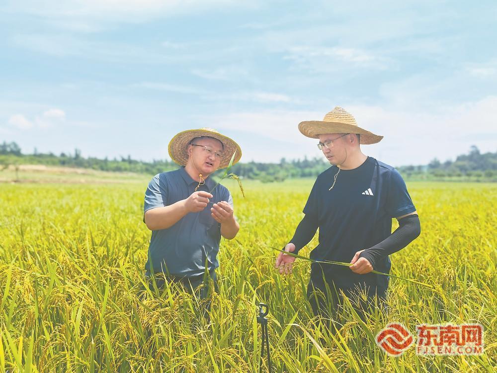 周鵬(左)與陳錦文在惠安縣東嶺鎮(zhèn)觀察旱稻長勢。 核心提示 盛夏時節(jié),福建夏糧擔(dān)當(dāng)——早稻喜迎豐收。 作為全省第一大糧食作物,水稻在福建人餐桌上的地位無出其右。作為我們最熟悉的碳水來源,水稻其實有多副面孔:有的擺脫了對水田的依賴,旱作也能谷滿倉;有的像韭菜一樣,種一次可以收獲兩季;有的天賦異稟,滿足了大健康消費的新需求……這些因地制宜形成的耕作模式,孕育出突破性的品種,共同構(gòu)成了福建水稻大家族,展現(xiàn)了端牢中國飯碗的福建擔(dān)當(dāng)與智慧。 循著稻花香,我們一起走近這些特立獨行的福建水稻。首先為您介紹近年來在泉州等地大面積推廣的“胡蘿卜+旱作水稻”輪作模式。 東南網(wǎng)8月13日報道(福建日報記者 張輝 文/圖) 每一種植物都有自己的舒適區(qū),只有在特定光熱、土壤等條件下才能茁壯成長。水稻,顧名思義,水田環(huán)境就是它的舒適區(qū),一生中的大部分時間是在大水漫灌中度過的。不過,也有一些“顯眼包”憑借與生俱來的強(qiáng)大耐旱技能,在旱地中也能元氣滿滿。這些被稱為旱稻或旱作水稻。 在中國漫長的稻作史上,旱稻一直擁有一席之地,北魏農(nóng)學(xué)著作《齊民要術(shù)》便詳細(xì)介紹了旱稻栽培技術(shù)。 走出舒適區(qū),水稻生產(chǎn)便有了更大想象空間。特別是在干旱缺水、不具備形成水層條件的地方,旱稻品種與節(jié)水灌溉技術(shù)雙劍合璧——2022年起,泉州在當(dāng)?shù)剞r(nóng)業(yè)農(nóng)村局及福建省農(nóng)業(yè)科學(xué)院泉州分院(泉州市農(nóng)業(yè)科學(xué)研究所)等科研機(jī)構(gòu)技術(shù)支持下,探索在胡蘿卜主產(chǎn)區(qū),利用夏閑田輪作旱稻,實現(xiàn)了糧食穩(wěn)產(chǎn)增產(chǎn)、胡蘿卜生產(chǎn)節(jié)本增效等多重效益。 解鎖耐旱密碼 水稻喜水,是刻在基因里的。 在漳浦縣湖西畬族鄉(xiāng)的一處水塘,生長著一片遠(yuǎn)古來客。它們長得似稻非稻:植株半匍匐,葉片狹長,稻穗上延伸出又長又細(xì)的稻芒,谷粒風(fēng)吹易落。這就是著名的漳浦野生稻,在生物學(xué)分類上屬于普通野生稻——亞洲栽培稻的祖先。 大約1萬年前,先民開始馴化野生稻。在自然變異與人工選擇中,它們野性盡消,逐漸變成今天我們熟悉的模樣。但從漳浦野生稻的生長環(huán)境不難看出,其逐水而居的習(xí)性,亙古未變。因此,筑田埂蓄水,引大水漫灌,是水稻栽培的傳統(tǒng)模式。 “水稻移栽后,田中要保持淺水狀態(tài),為秧苗分蘗創(chuàng)造條件;分蘗后期,要曬干烤田,直到田塊皸裂、腳踩不陷,以控制無效分蘗,同時有利于深入扎根,抗倒伏;等到幼穗分化,再度灌水,讓水稻在干濕交替中完成生殖生長,直到收獲前期才能斷水。”福建省農(nóng)業(yè)科學(xué)院泉州分院院長助理、副研究員周鵬說,從浸種催芽到灌漿成熟,水稻短短120多天生育期,大部分時間與水打交道,水分管理至關(guān)重要。 不過,旱稻不走尋常路。發(fā)達(dá)的根系,能夠深入土層找水源;葉片厚實,蠟質(zhì)層鎖水能力一流;獨特的氣孔結(jié)構(gòu),有效減少水分蒸發(fā)……這些特質(zhì)賦予了它們異于常“稻”的耐旱能力,能夠在無水層條件下生長。 這是普通水稻求之不得的技能。每年,我國超70%中低產(chǎn)田可能因干旱減產(chǎn)。福建省農(nóng)業(yè)科學(xué)院水稻研究所研究員張建福、中國科學(xué)院院士謝華安團(tuán)隊近年來接連在國際期刊發(fā)表研究成果,鎖定了多個功能基因,揭示了調(diào)控水稻耐旱性的分子“開關(guān)”。比如,名為“MAPKKK17”的基因在干旱條件下能激活水稻滿滿的求生欲,通過“關(guān)閉”葉片上的細(xì)胞來減少水分流失。 打好糧經(jīng)配合戰(zhàn) 最近,葉國正忙著收割旱稻,為后茬胡蘿卜播種做準(zhǔn)備。他所在的泉州市菁園匯晟農(nóng)業(yè)綜合開發(fā)有限公司,在惠安縣擁有2300多畝胡蘿卜基地。 “每年4月胡蘿卜采收結(jié)束,到9月再度播種,中間幾個月就屬于季節(jié)性休耕期。”葉國正說,此時正是雜草瘋長的季節(jié)。為了不影響秋季胡蘿卜種植,必須在休耕期間頻繁除草,壓制其長勢,“土地?zé)o產(chǎn)出不說,還徒增草害防控成本”。 在惠安,像這樣的耕地有4萬多畝。能不能把夏閑田用起來,多產(chǎn)一季糧食呢? 經(jīng)專家評估和綜合考量,當(dāng)?shù)貨Q定探索“胡蘿卜+旱作水稻”輪作模式。一個關(guān)鍵點是,作為福建胡蘿卜主產(chǎn)區(qū),惠安、晉江等地鋪設(shè)了大量微噴灌系統(tǒng),這些基礎(chǔ)設(shè)施正好也可以為旱稻提供灌溉。 這看似水到渠成,但也有不少技術(shù)難關(guān)要突破。最難的是品種關(guān)。 “我們主要從現(xiàn)有水稻品種中篩選適合旱種的品種。”福建省現(xiàn)代水稻產(chǎn)業(yè)技術(shù)體系泉州試驗站站長、副研究員陳錦文說,能夠被選中的品種,不僅是“三好學(xué)生”——具有高產(chǎn)、穩(wěn)產(chǎn)、優(yōu)質(zhì)等基本素質(zhì),還得是“特長生”——在耐旱方面天資卓越。適合旱種的水稻品種通常兩頭都吃得開,在水田與旱地中都有穩(wěn)定表現(xiàn)。如若不然,隨著環(huán)境改變,要么“早婚早孕”,結(jié)出的稻谷先天不足;要么“晚婚晚孕”,生育期過長。 糧經(jīng)輪作,還要打好配合戰(zhàn)。也就是說,旱稻的