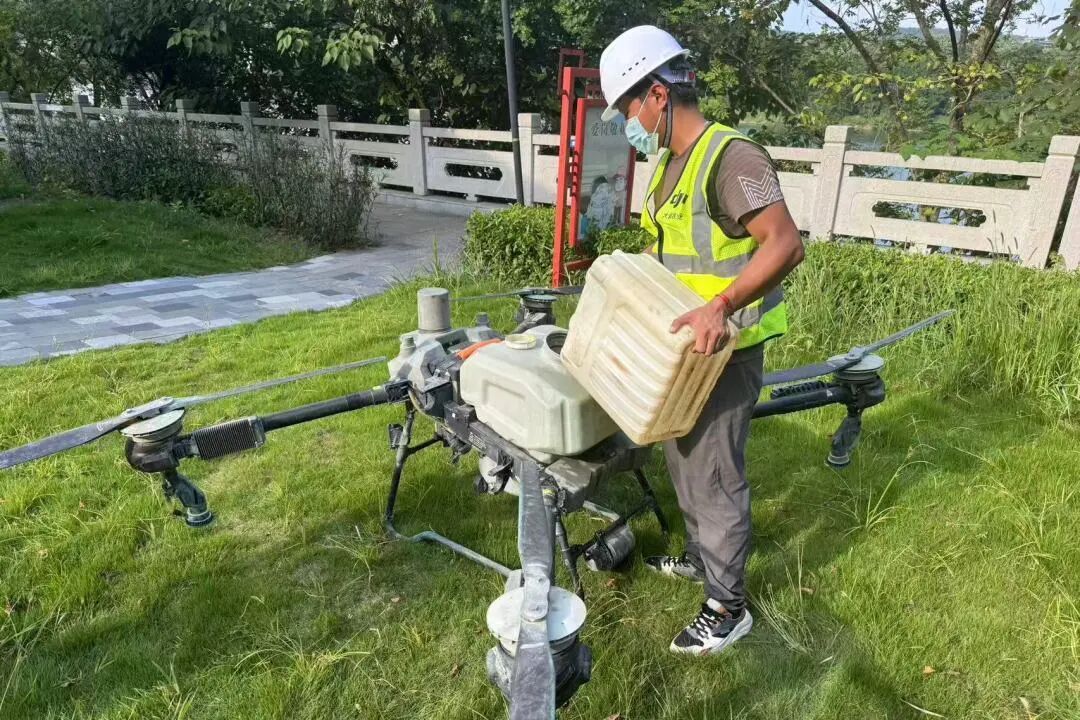 伴隨著扇葉高速轉動,載藥100升的飛防作業無人機,在民主南路九儒公園穩穩升空,沿著步道兩側綠化帶,精準防治病蟲害…… 9月7日晚,建陽區城市管理和綜合執法局針對卷葉螟、蚜蟲等病蟲害,通過科技賦能,開展立體化防治作業,作業面積1.9萬余平方米,持續維護轄區綠化的整體景觀效果與生態功效。 在現場,園林作業人員熟練地給無人機搭載的白色塑料桶內注滿藥物,緊接著操控無人機穩定起飛,沿著綠化帶上空緩緩飛行,無人機下方噴灑出濃密的水霧,將高效、低毒、符合國家標準的生物制劑,精準噴灑到植物頂端,幾分鐘便能完成一個區域的防治作業。 園林服務中心工作人員:“相較于傳統人工背壺施藥模式,無人機飛防的噴灑系統,高效省時、覆蓋面廣,傳統人工一天的作業量,無人機僅需數小時即可完成,可精準覆蓋樹木頂端及密集冠層,尤其適用于廣場、公園、道路兩側等大面積綠地和高大樹冠,作業效率倍增,解決人工操作中‘高樹噴不到、死角難覆蓋’的難題。” 作業現場,園林作業人員遠程操作,徹底避免了與生物藥劑的直接接觸,極大保障了人員安全。同時,也減少了對市民日常游園活動的干擾。 下一步,區城管局將根據季節變化、病蟲害發生規律,動態調整防治方案,將園林綠化病害“管在苗頭、控在經常”,著力建設綠色低碳的美麗城市。 潭小管溫馨提示,尊敬的市民們,飛防作業期間,請盡量避免在作業路段長時間停留,如遇無人機作業可合理繞行,請管理好您的寵物,避免進入作業區域,共同守護城市綠化成果。 |