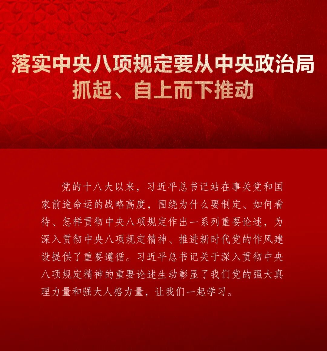 深入貫徹中央八項規定精神學習教育|落實中央八項規定要從中央政治局抓起、自上而下推動