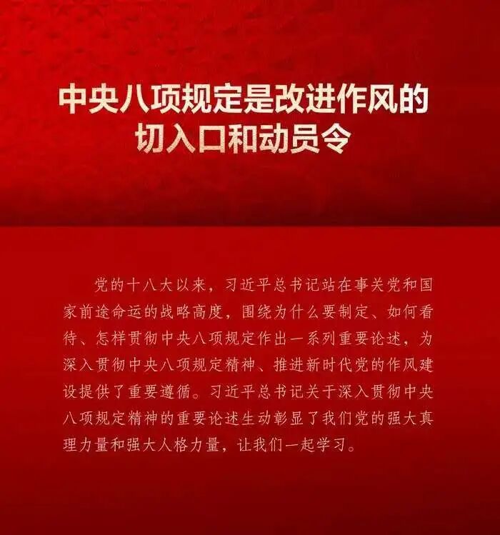 深入貫徹中央八項(xiàng)規(guī)定精神學(xué)習(xí)教育|中央八項(xiàng)規(guī)定是改進(jìn)作風(fēng)的切入口和動(dòng)員令